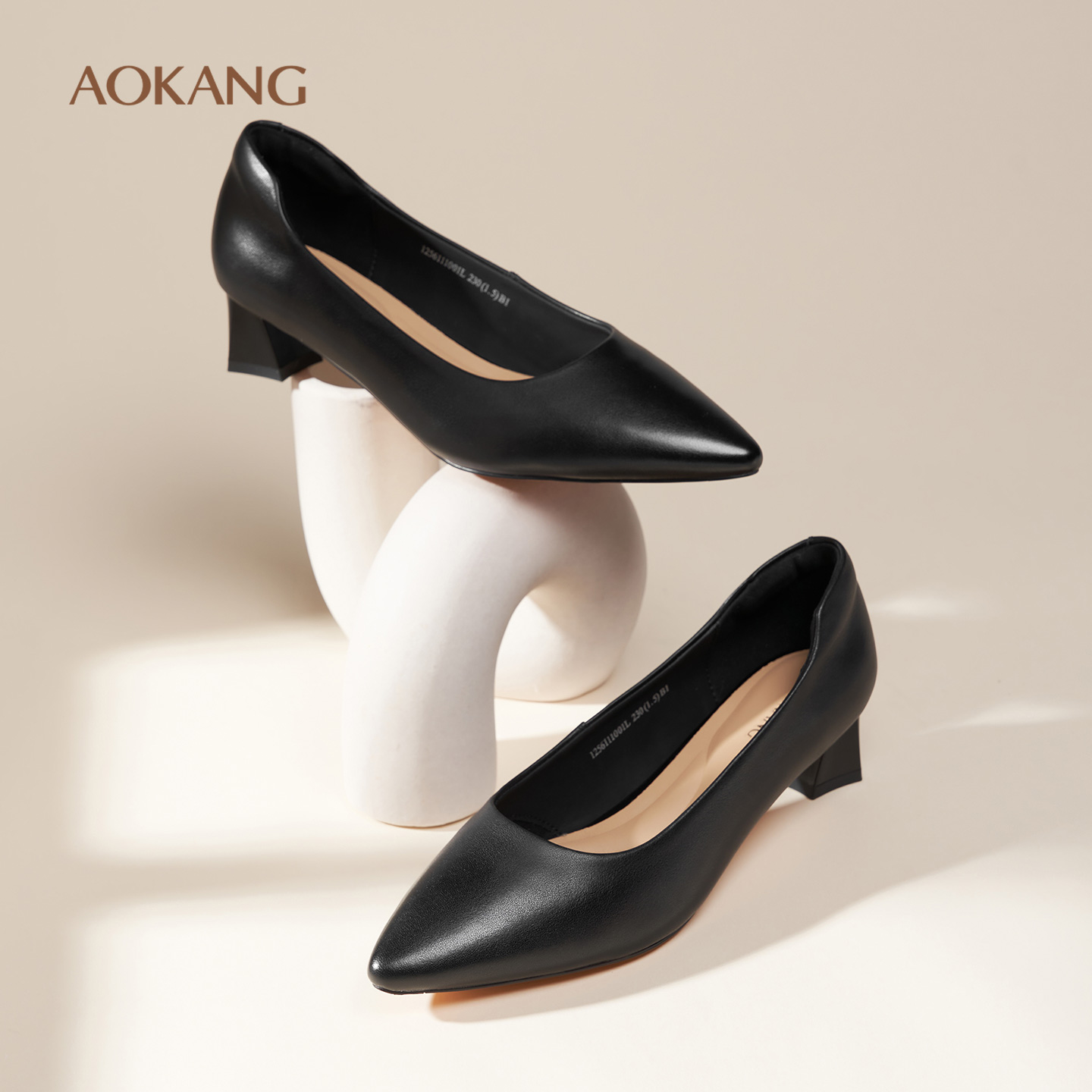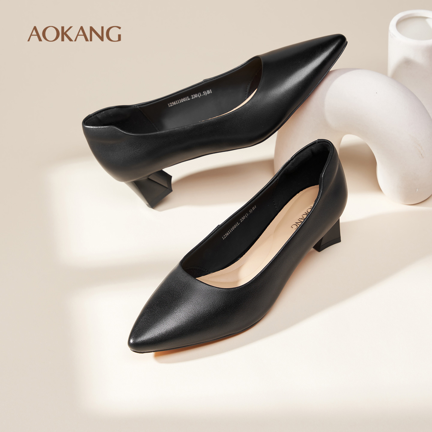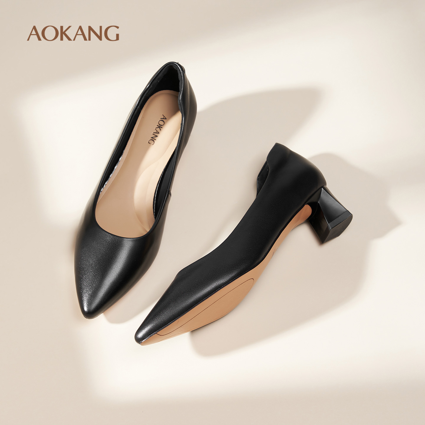 女鞋 尖头高跟职业面试鞋 2025秋季 浅口粗跟单鞋 通勤小皮鞋 奥康