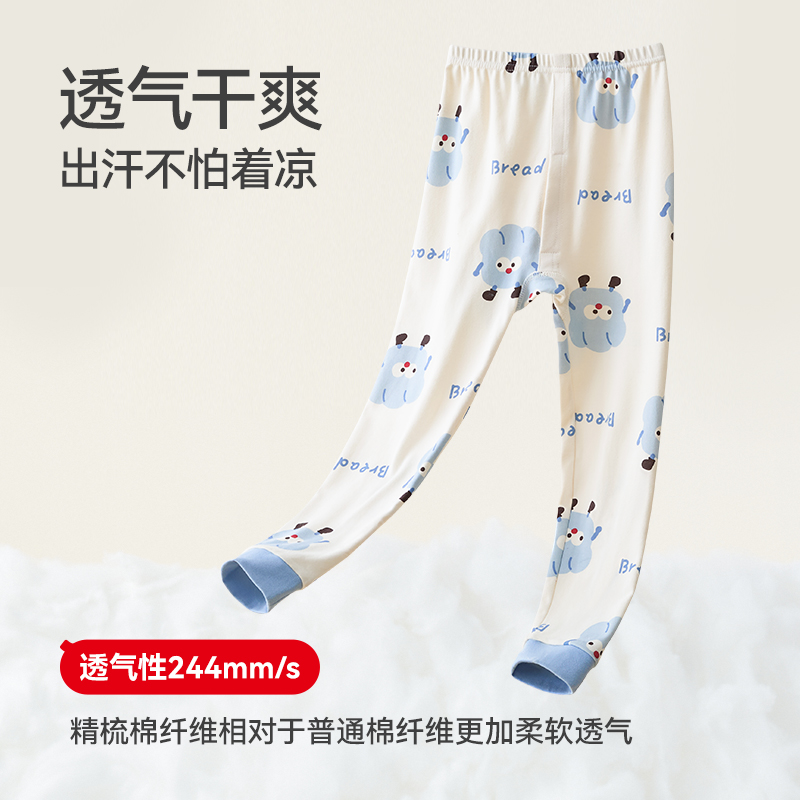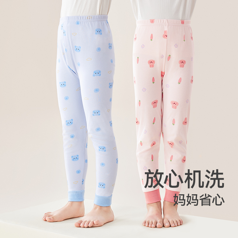 棉毛裤 100%全棉大童打底线裤 纯棉内穿男童女童保暖裤 红豆儿童秋裤