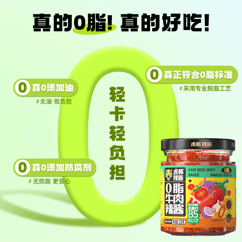 虎邦0脂牛肉辣酱鲜椒牛肉酱番茄酱水煮菜轻食低脂拌面下饭酱蘸料