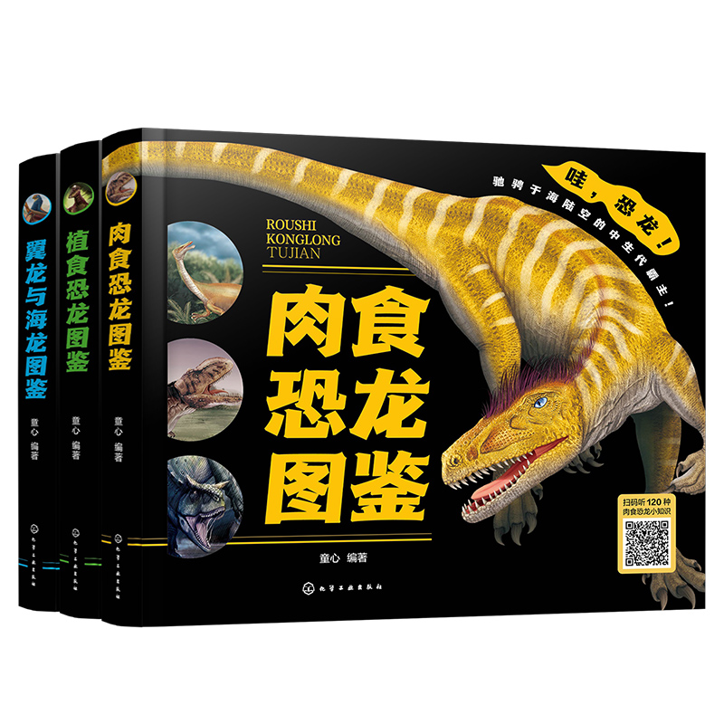 肉食恐龙植食恐龙翼龙与海龙图鉴 赠音频 3册 童心 儿童恐龙迷科普图书籍 官方正版 外形特征栖息环境生存时代种群分类 精装