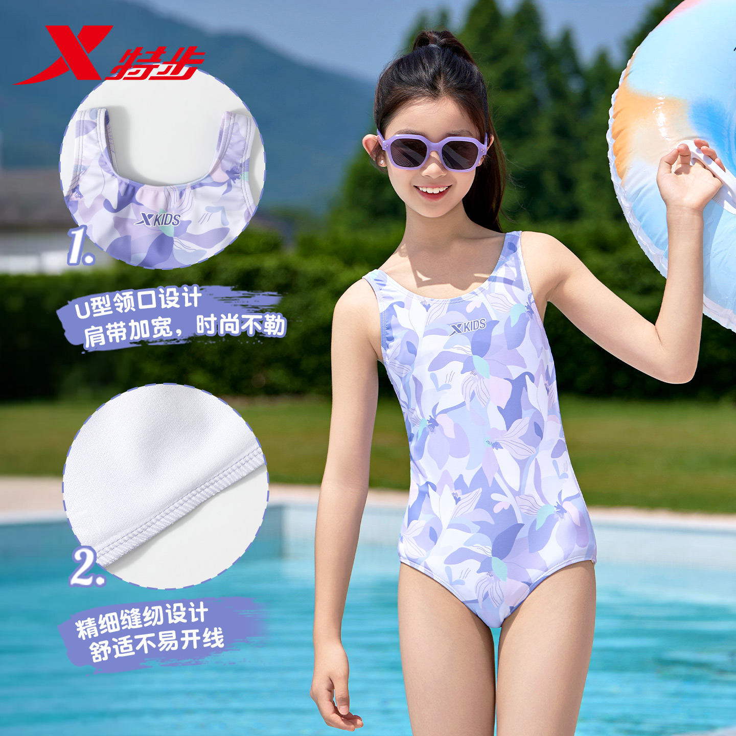 特步儿童泳衣女童中大童连体游泳衣新款 备 女孩初中生专业训练泳装