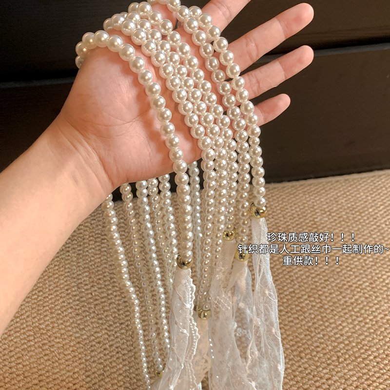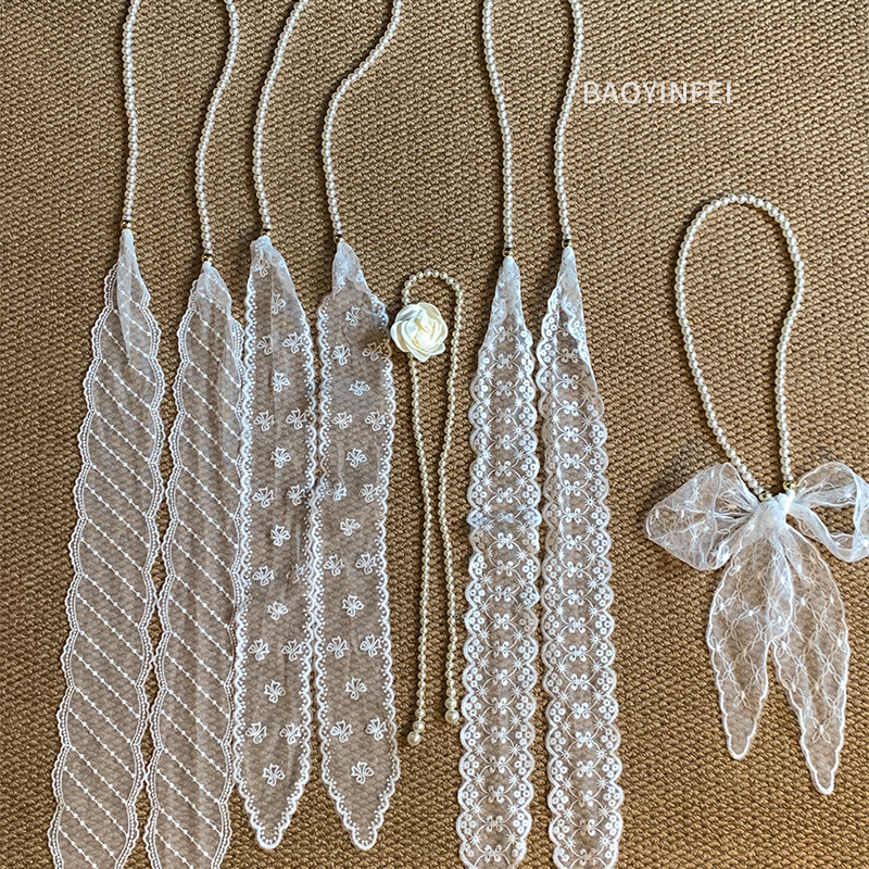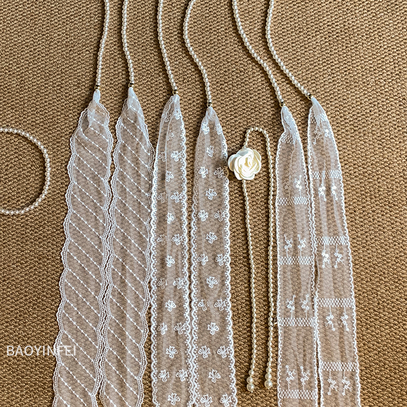 法式 气质甜美多功能飘带丝巾高级感绑发带 超仙珍珠蕾丝腰带女夏季