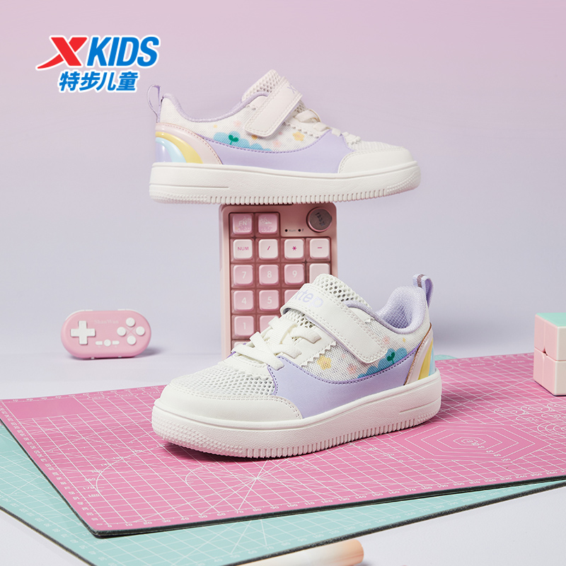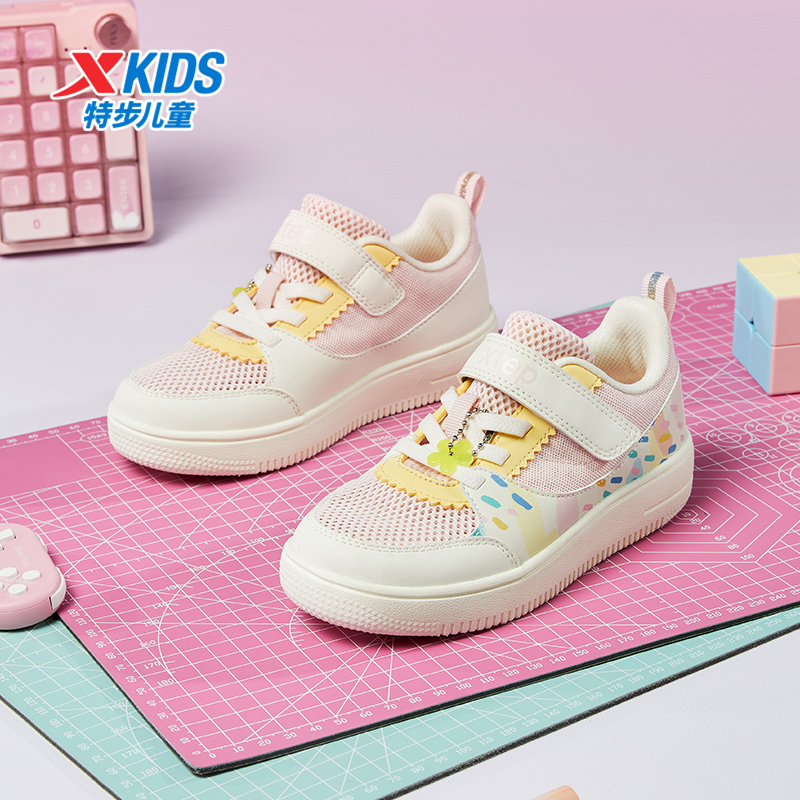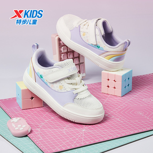 子小童舒适软底儿童休闲鞋 春夏透气鞋 女童防滑魔术贴板鞋 特步童鞋