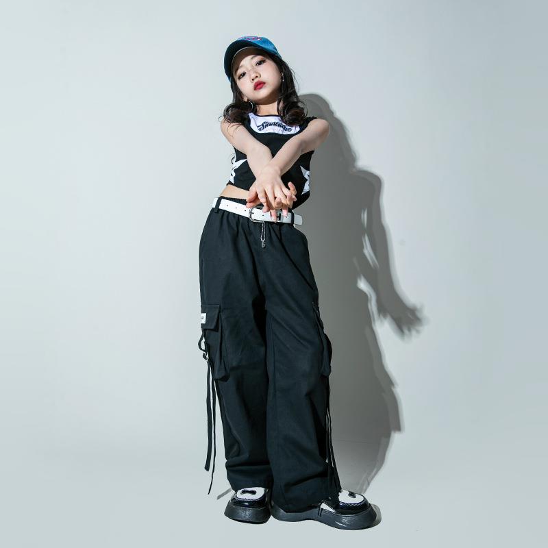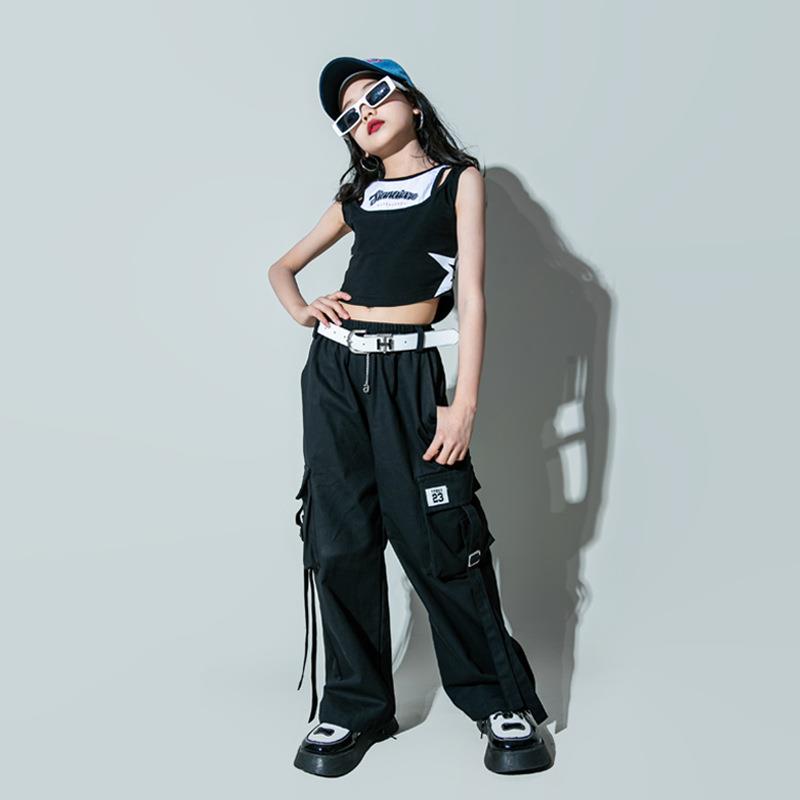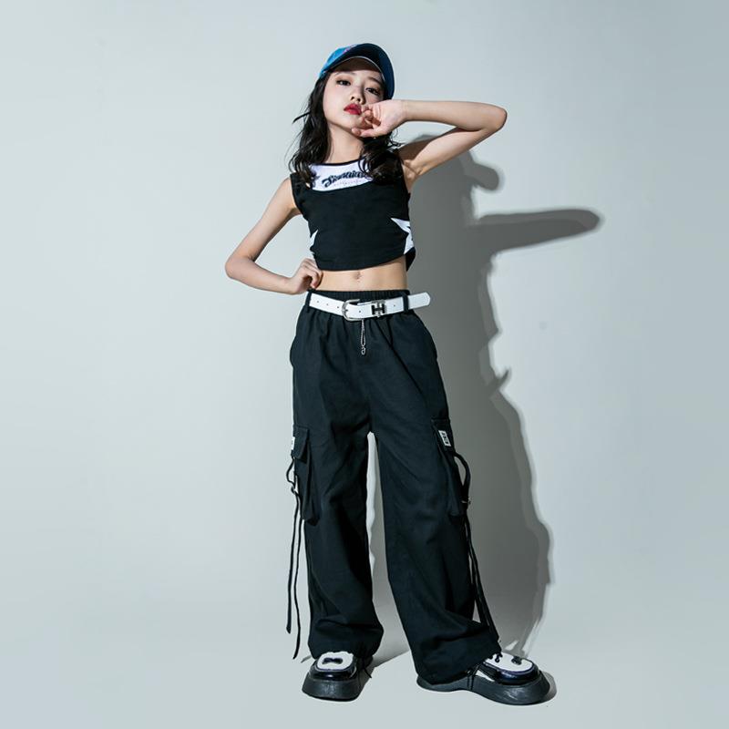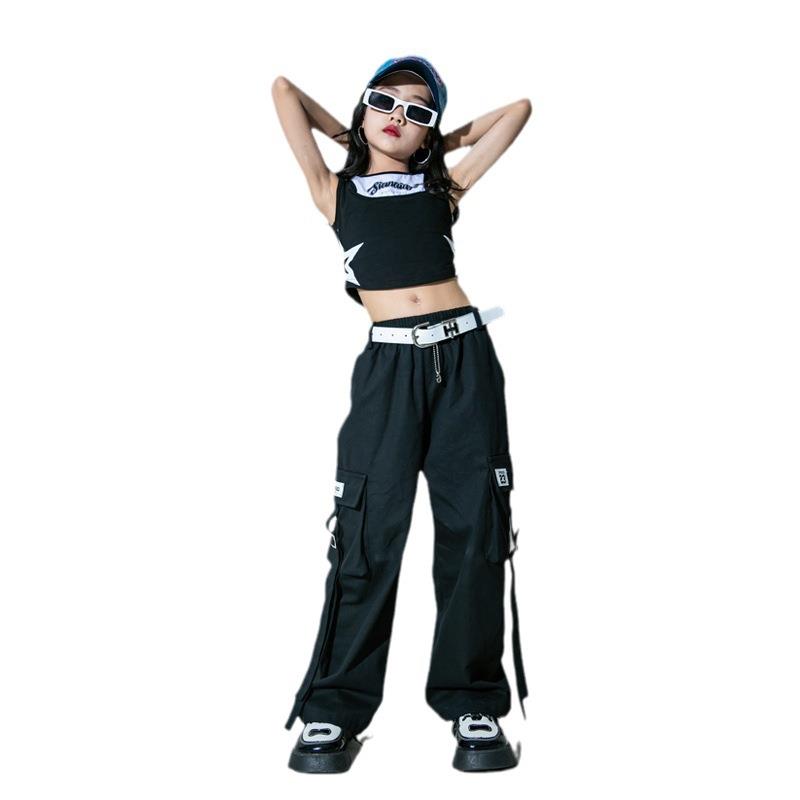 爵士舞服装 女孩表演服jazz露脐潮牌街舞儿童潮服 女童潮酷炸街套装