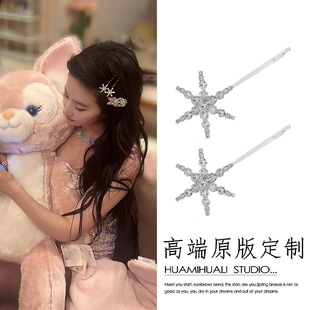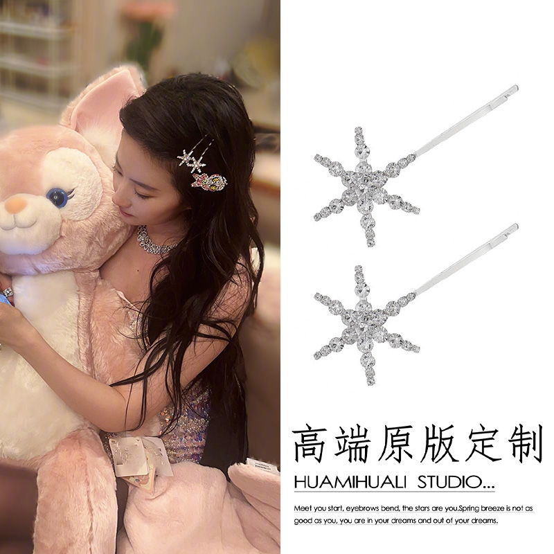 刘亦菲同款 粉色奥特曼发夹女高级感雪花一字夹BB夹侧边刘海夹发饰