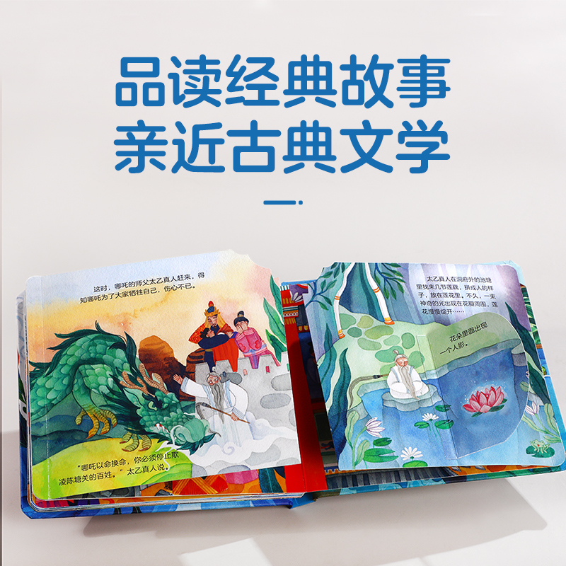 2故事全套翻翻书4 6岁益智玩具漫画洞洞触摸幼儿早教点读翻翻3D机关书 3岁乐乐趣揭秘小世界1 哪吒闹海绘本立体书儿童宝宝0