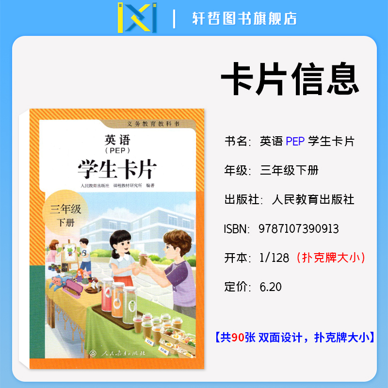 英语 2025新版 PEP 单词学生卡片三年级上册86张三年级下册90张扑克牌大小便携式 社 双面设计人民教育出版 PEP三年级学生卡片