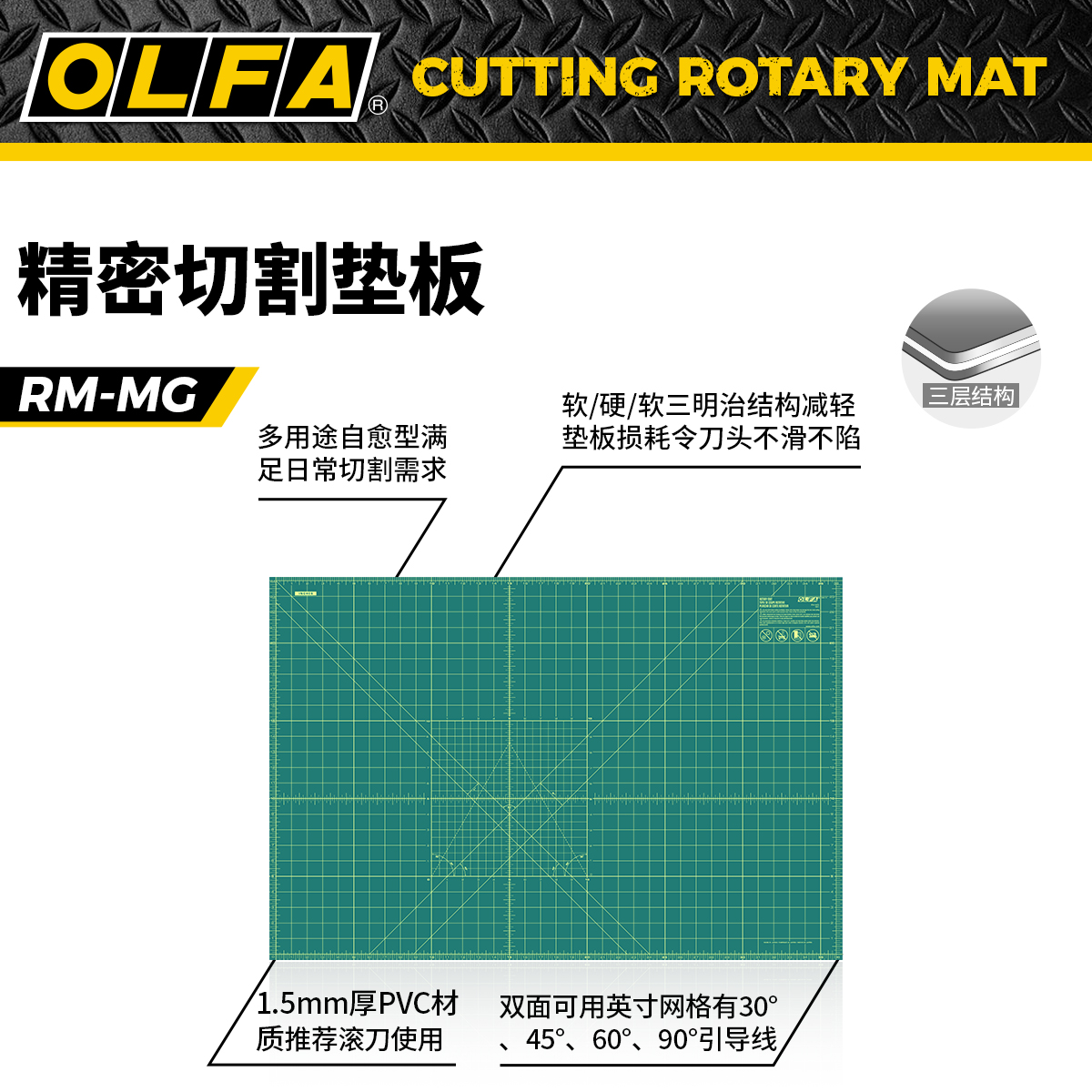 日本进口OLFA爱利华旗舰店切割垫板防割刀板DIY可愈合手工垫板A2双色双面手帐桌垫A3雕刻版 A4裁纸垫日文版