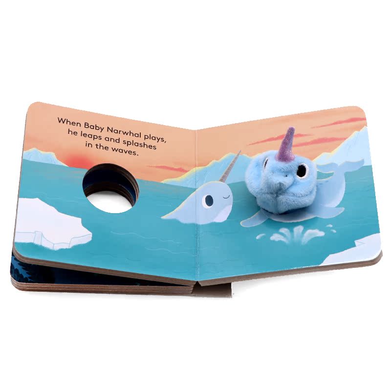 Baby 亲子互动 3岁 小手掌书纸板书 正版 独角鲸宝宝小小手指偶书 宝宝玩具书 Finger Narwhal 进口英文原版 Puppet Book