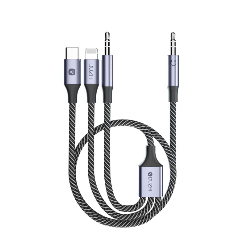 都芝typec适用苹果aux音频线三合一车用3.5车载低音炮发烧级无损汽车手机音响连接线1分2转音频线转接头拖出