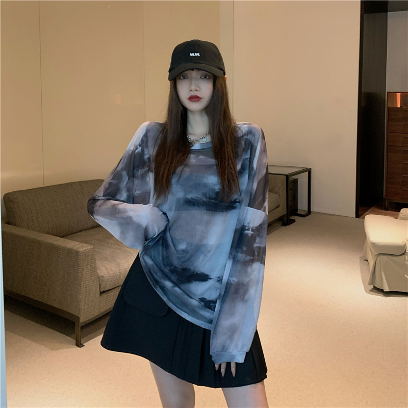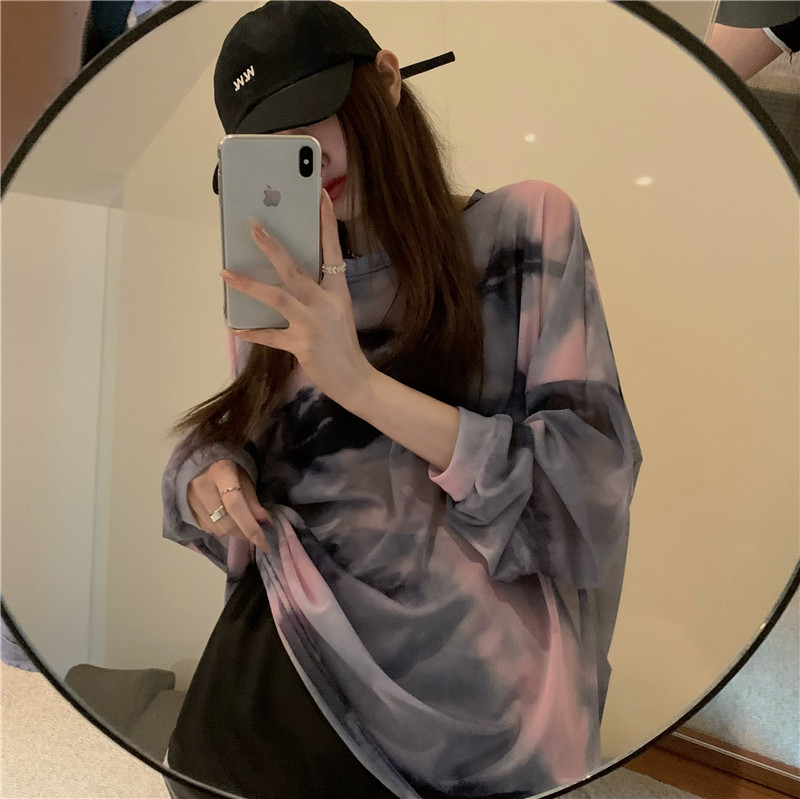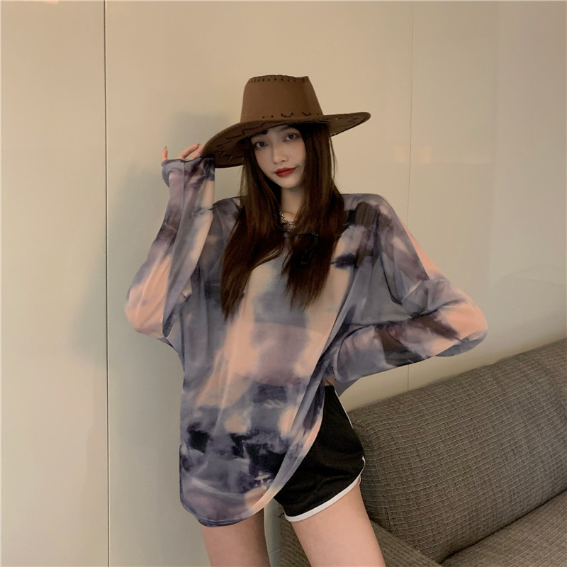 夏季 扎染T恤女装 2021年新款 宽松早秋装 上衣 冰丝薄款 长袖 防晒罩衫
