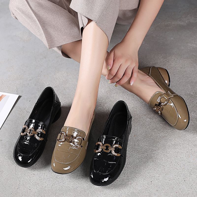 新款 妈妈单鞋 粗跟漆皮圆头女鞋 大码 41一43 百搭英伦风皮鞋 2025夏季