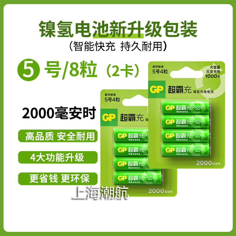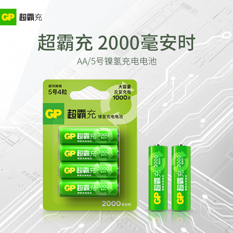 1000次充放电GP超霸5号充电电池套装 五号2000毫安时KTV话筒麦克风儿童玩具门锁1.2V充电电池可代1.5v充电池
