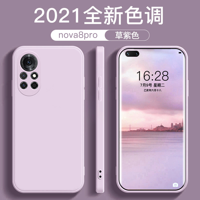 适用于华为nova8手机壳2024新款 烟蓝灰nova8pro液态硅胶se全包防摔5g曲面屏简约纯色软壳男女情侣磨砂保护套