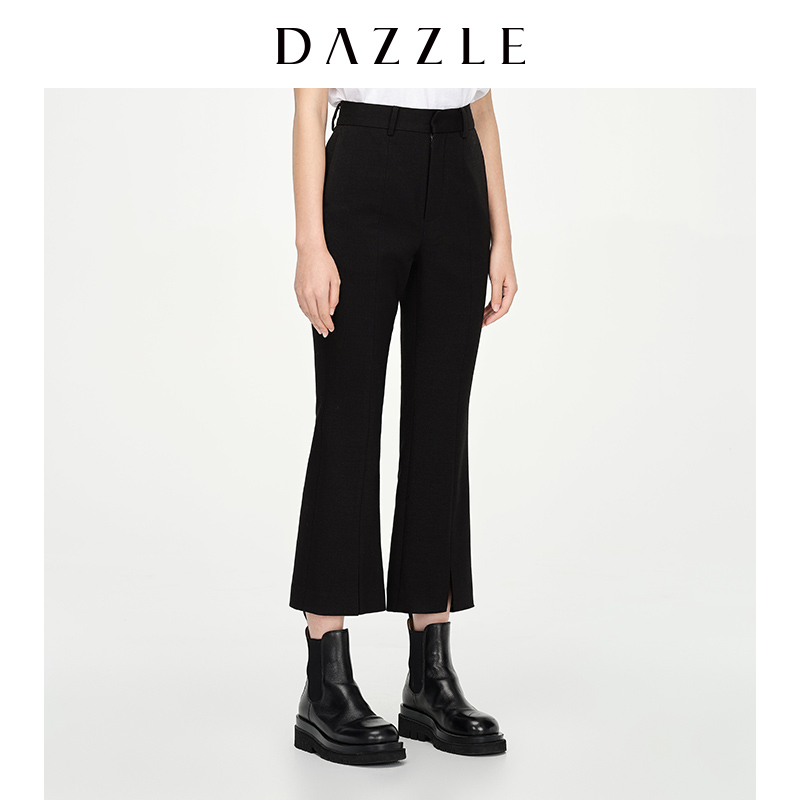 DAZZLE地素奥莱 女2D1Q4091A 黑色开叉显瘦锥形微喇西裤