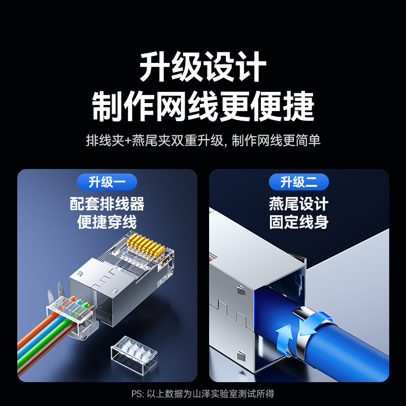 山泽七类八8类水晶头网线超六6类7类万千兆屏蔽rj45网络对接插头