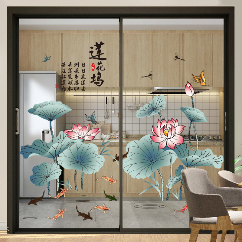 厨房玻璃门装 饰贴纸自粘客厅阳台推拉门防撞墙贴画中国风墙面布置