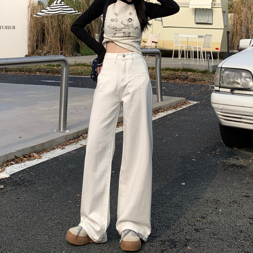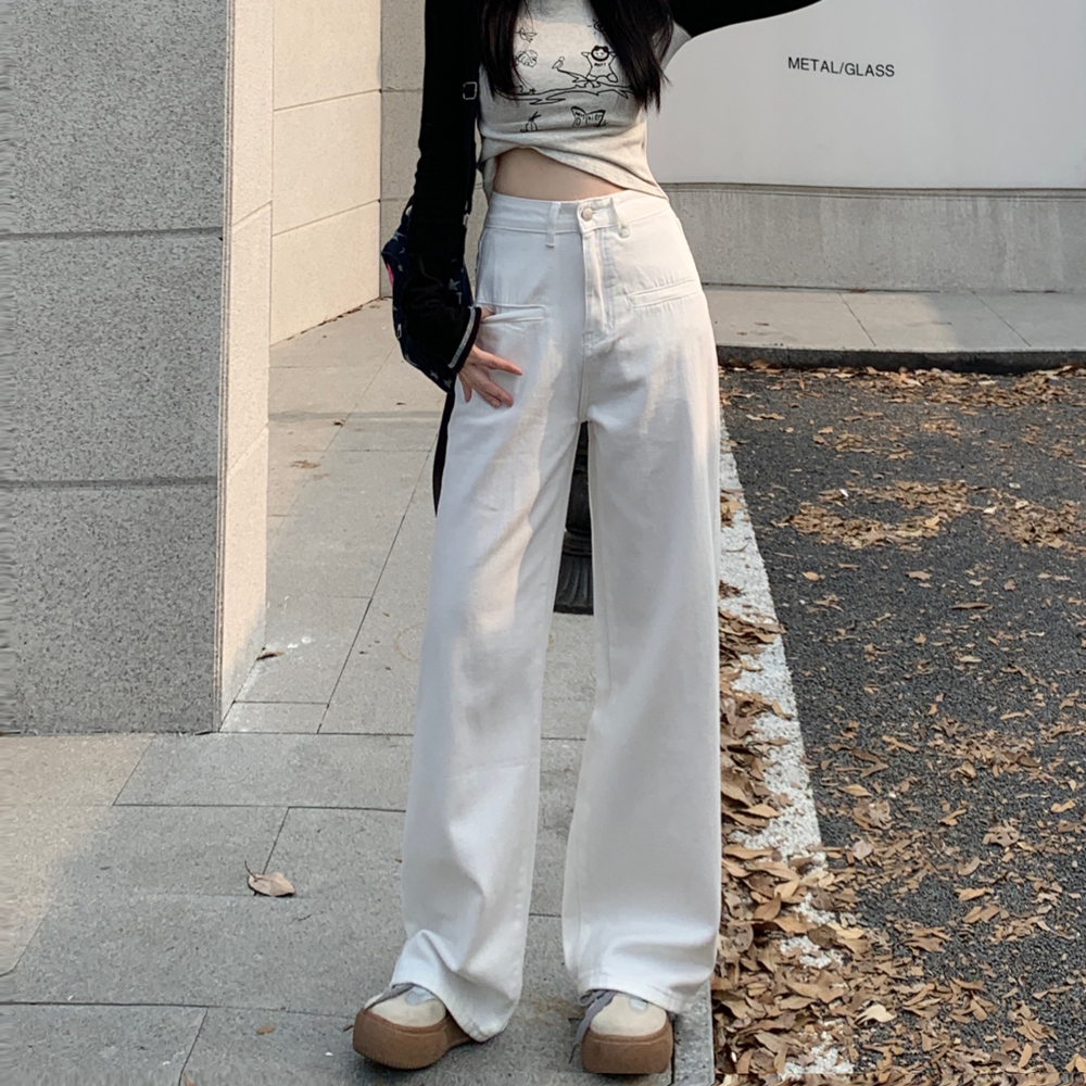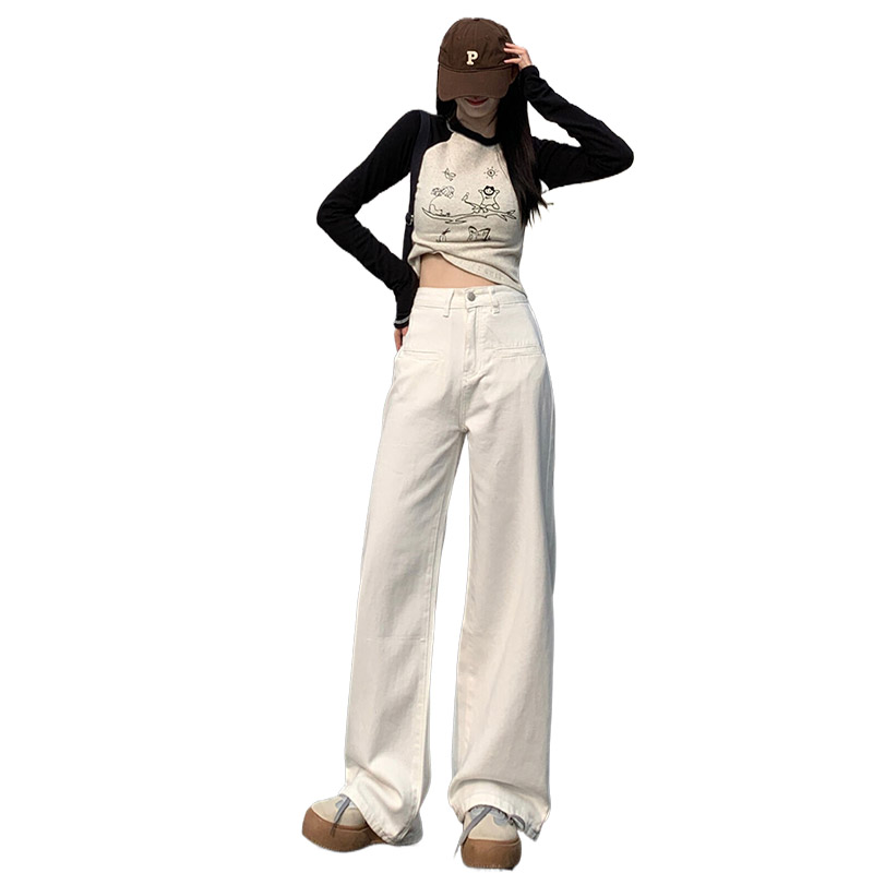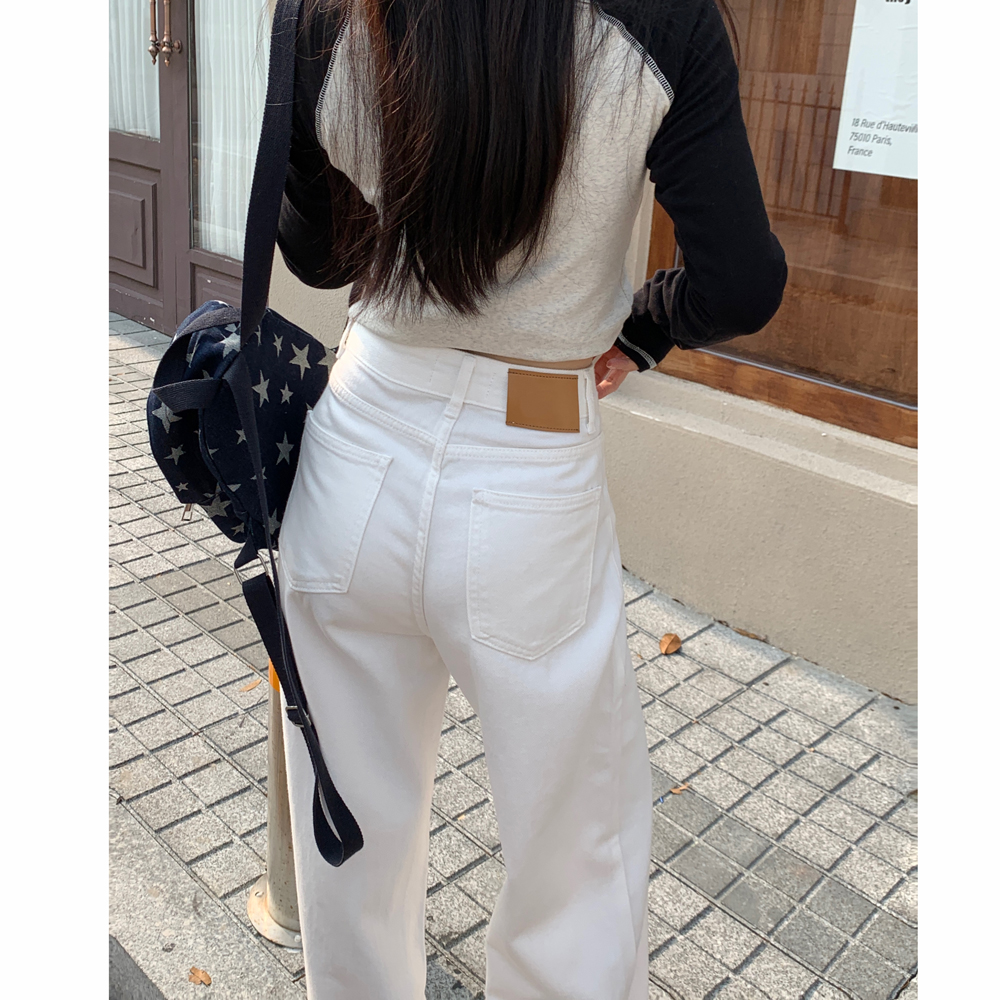 梨型直筒长裤 白色阔腿牛仔裤 高腰显瘦垂感美式 流行新款 女春夏新款