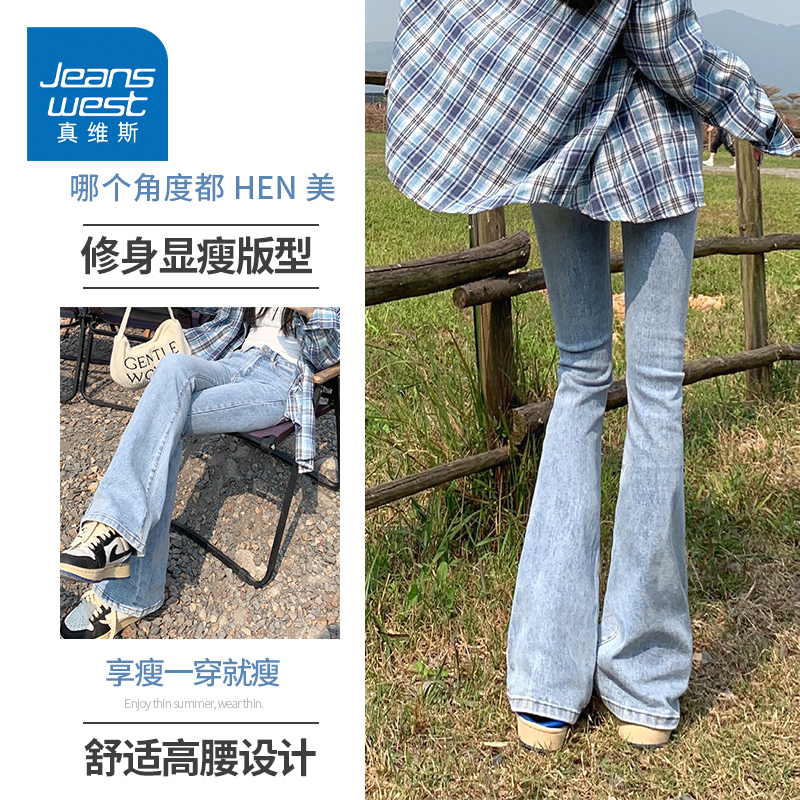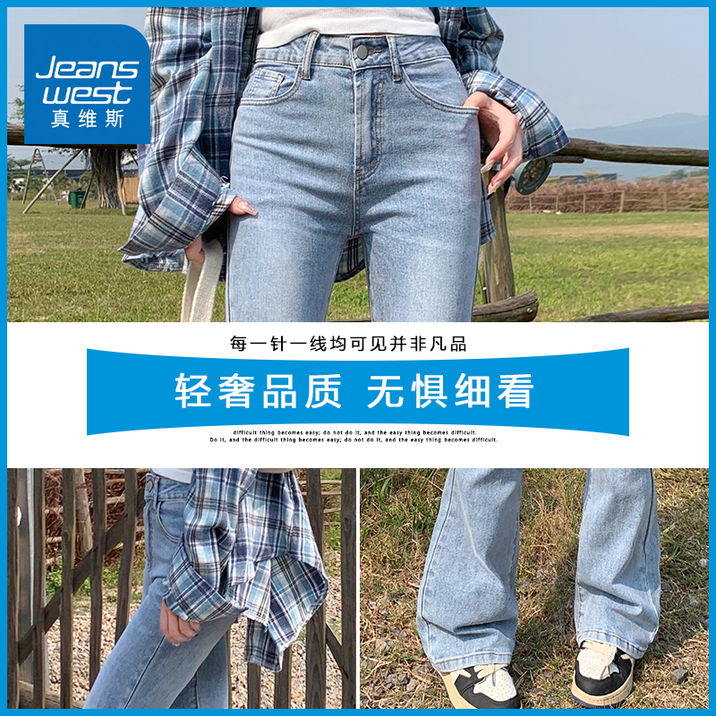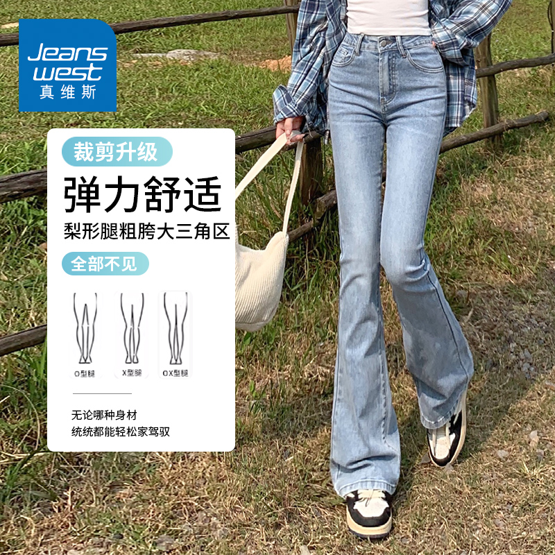 浅色高腰显瘦阔腿长裤 KZH真维斯秋冬新款 马蹄裤 女修身 微喇牛仔裤