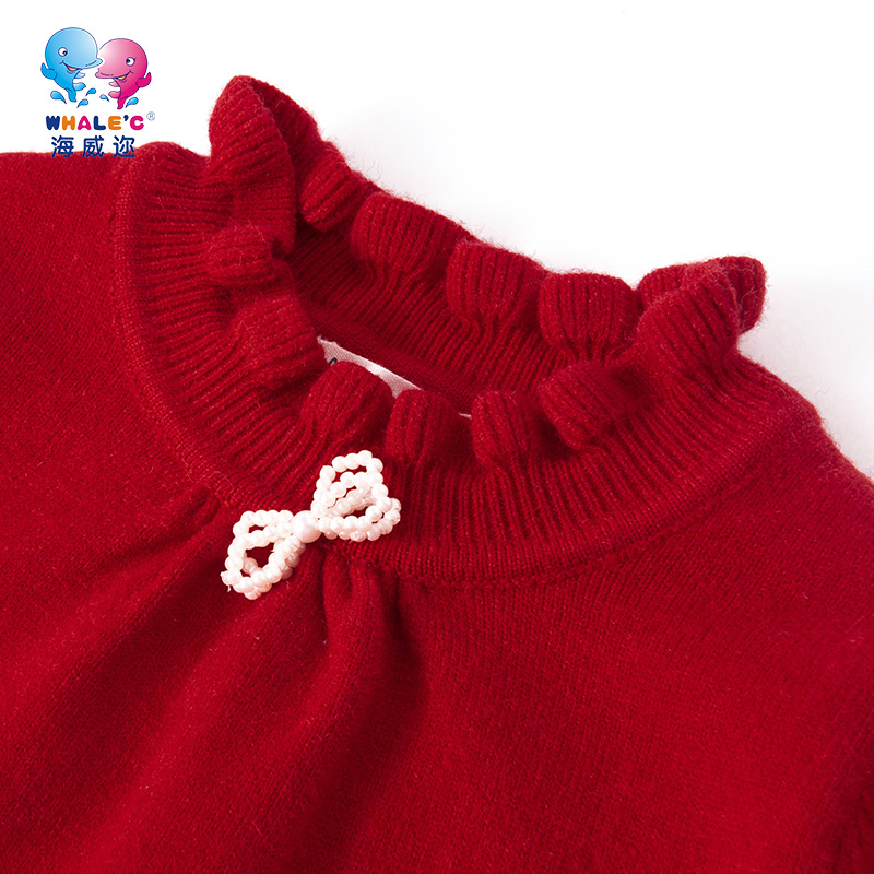上衣 运动儿童童装 女童秋冬线衫 毛衣2024新中大童木耳边领时尚