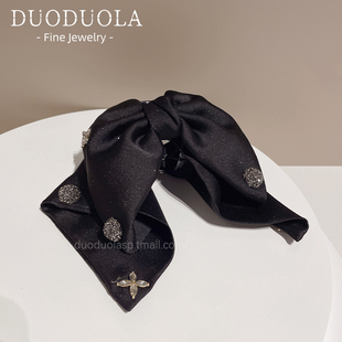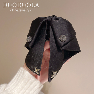 黑色法式 盘发鲨鱼夹 系带缎面蝴蝶结抓夹水钻点缀高级感优雅气质款