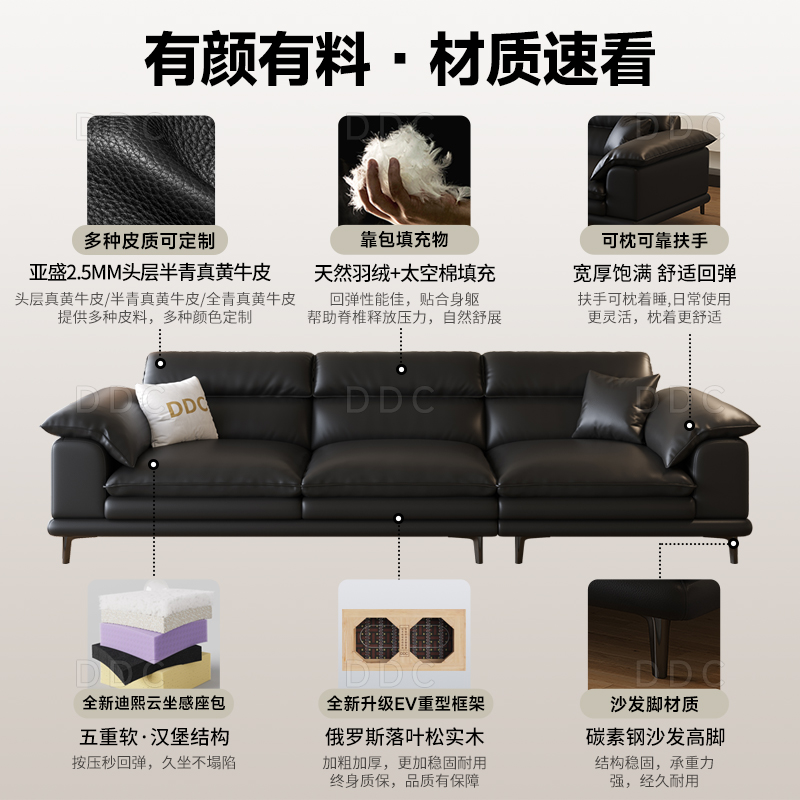黑色头层牛皮沙发新款 DDC意式 极简大象耳朵真皮沙发客厅2025新款