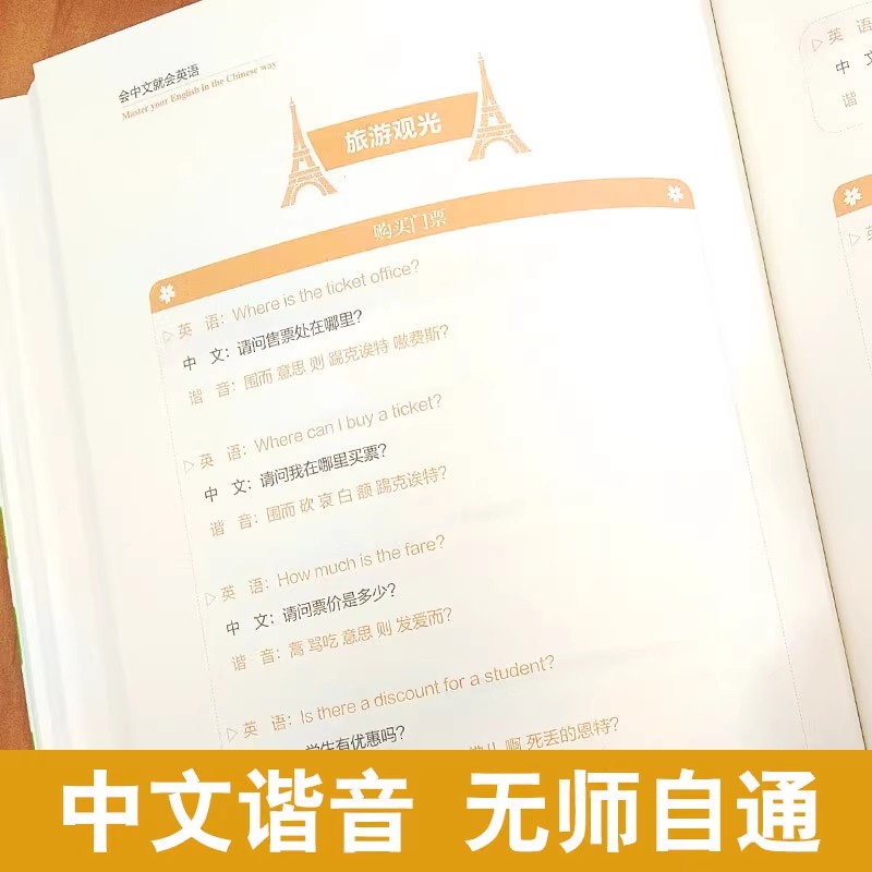 对话会中文就会说英文 英语口语马上说 会中文就会英语 一看就懂一读就会从0学英语易如反掌英日韩语入门自学零基础中文拼音谐音