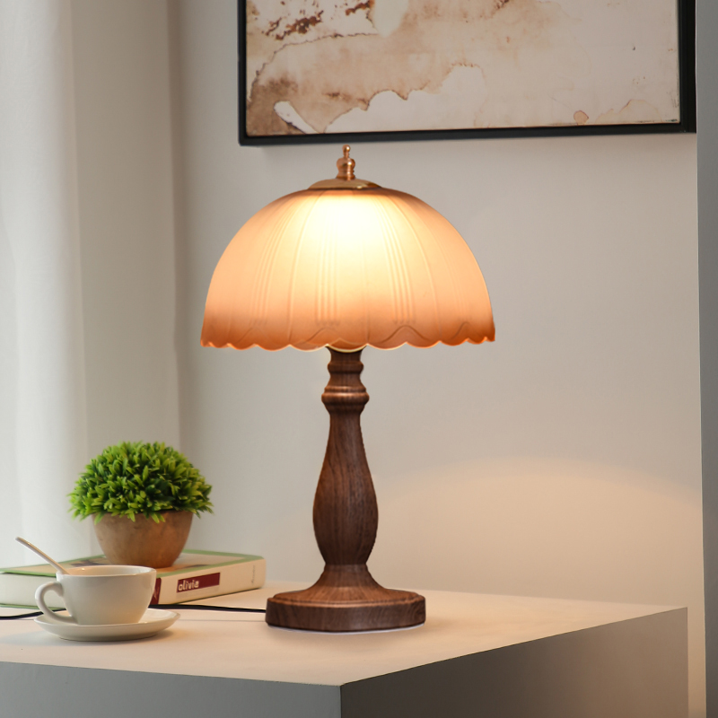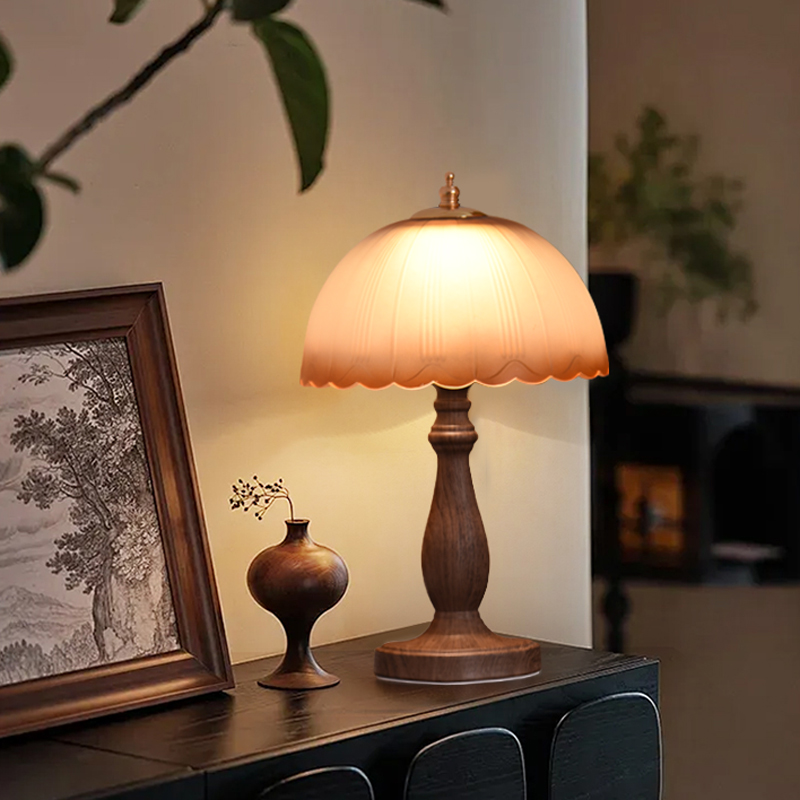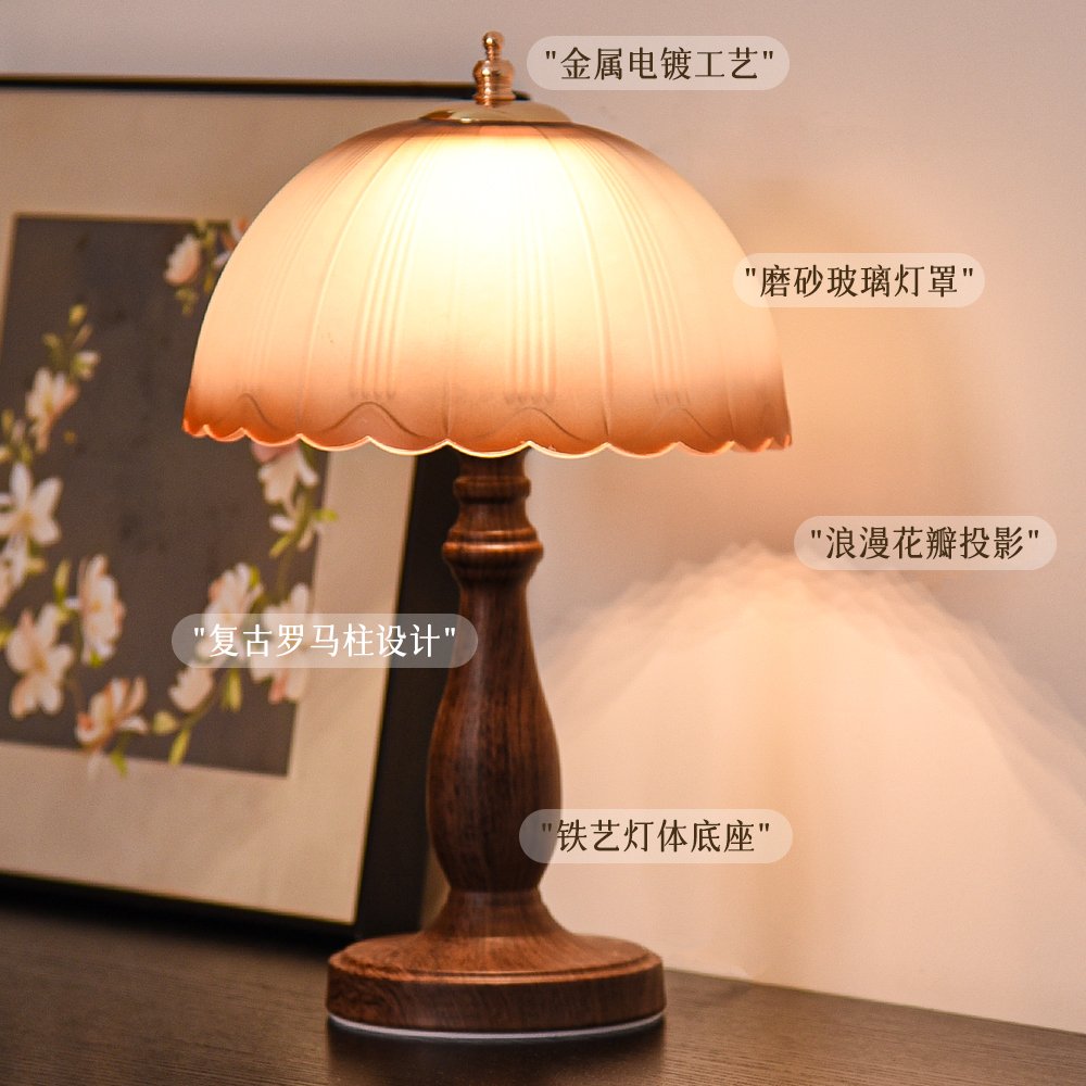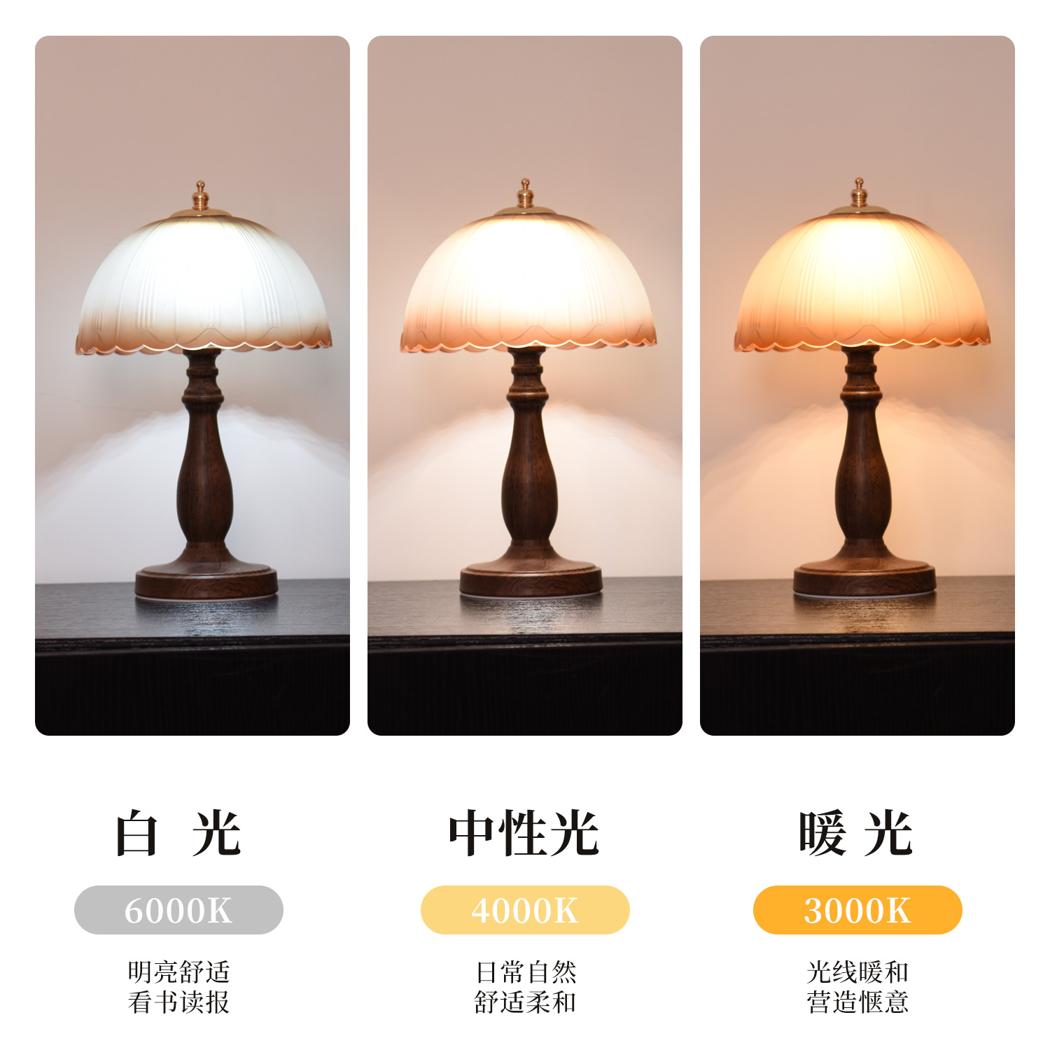 2025中古侘寂风台灯卧室床头灯复古高级感胡桃木色氛围美式 小夜灯