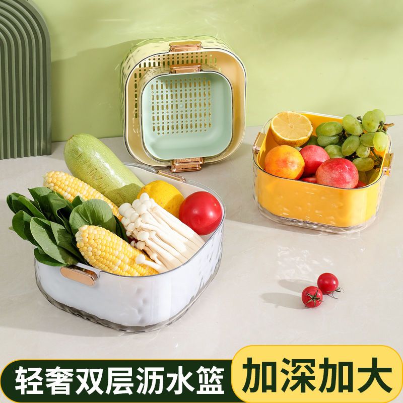双层加厚沥水篮家用厨房塑料洗菜盆多功能客厅洗水果盘收纳菜果篮