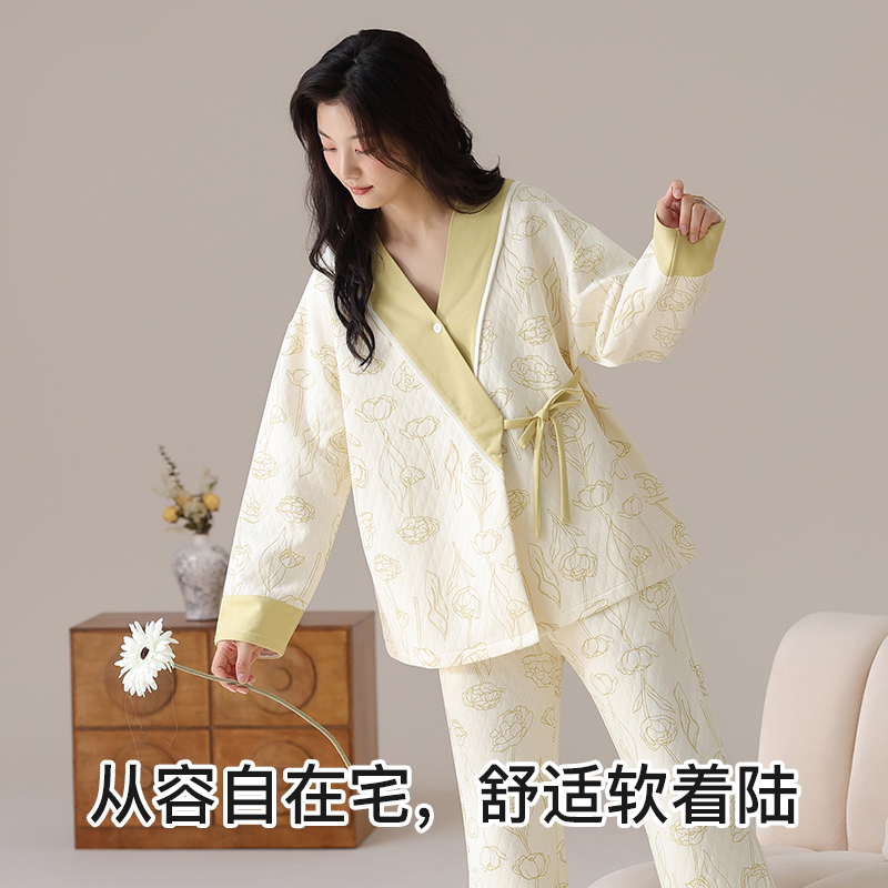 加厚哺乳待产喂奶孕妇套装 裤 女士家居服和服长袖 七色纺睡衣秋冬款