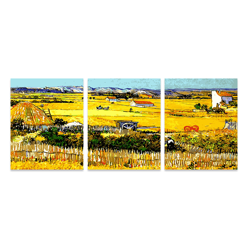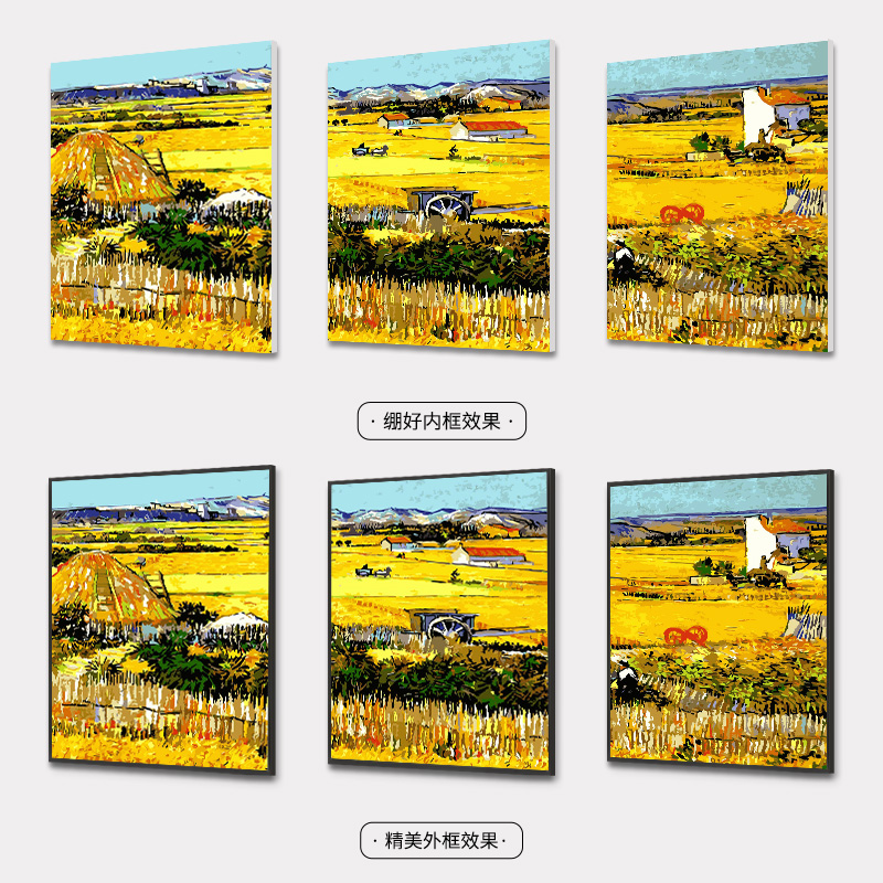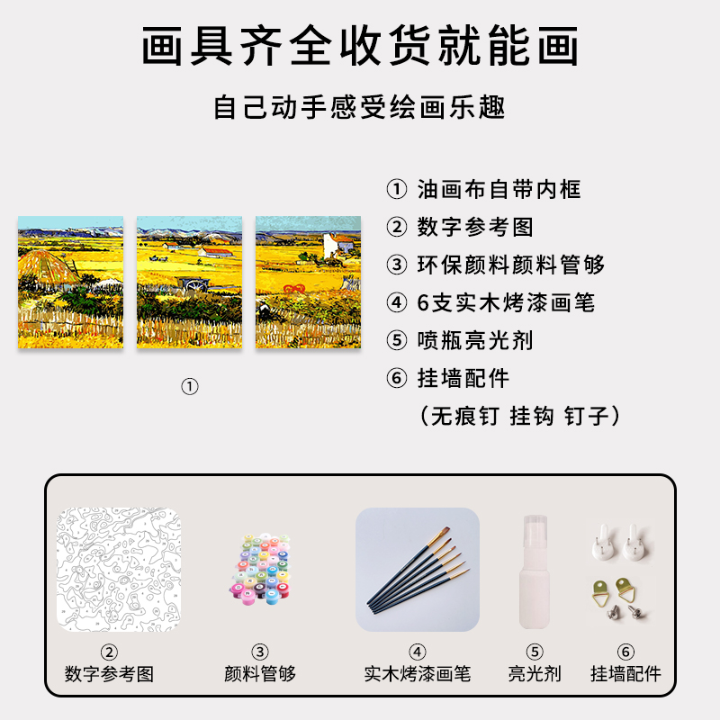 数字油画diy填色填充手工三拼三联客厅梵高名画风绘油彩画装 饰画