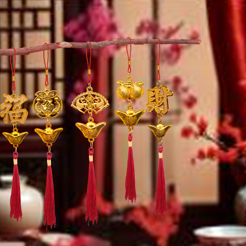 新年装 挂饰2026过年植物发财树绿植挂件小 饰品马年春节盆栽树上