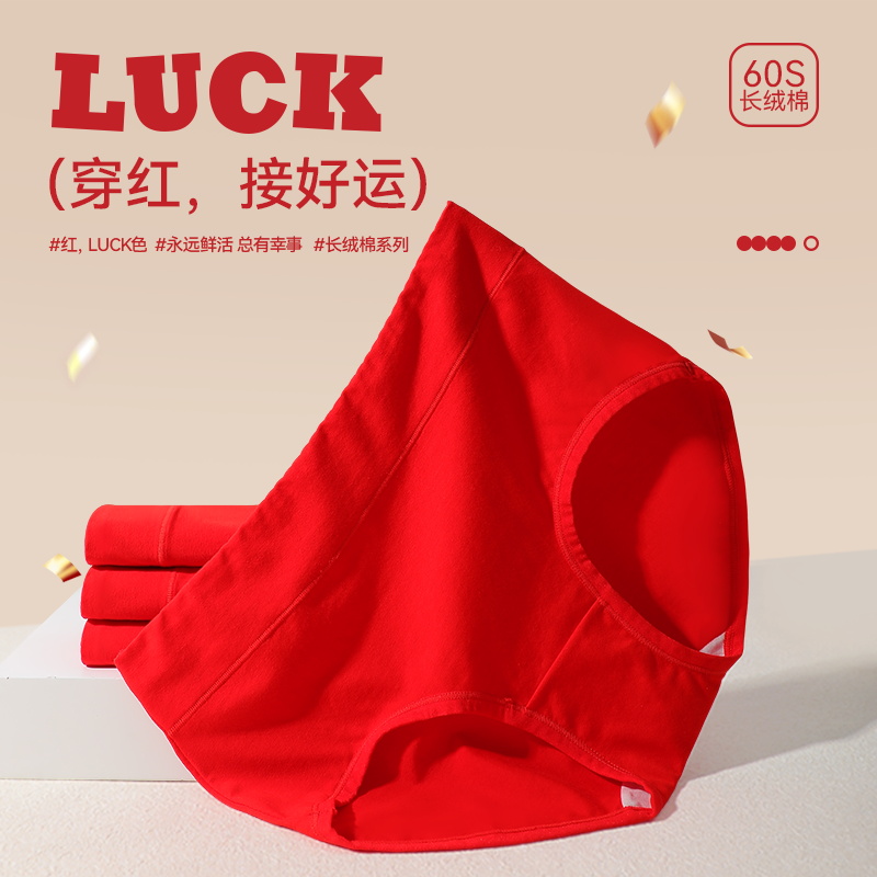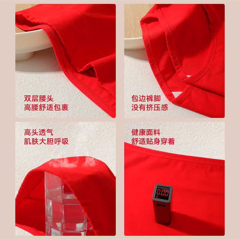 正红蛇年结婚三角裤 大红色本命年内裤 女士中高腰纯棉7A抗菌裆新款