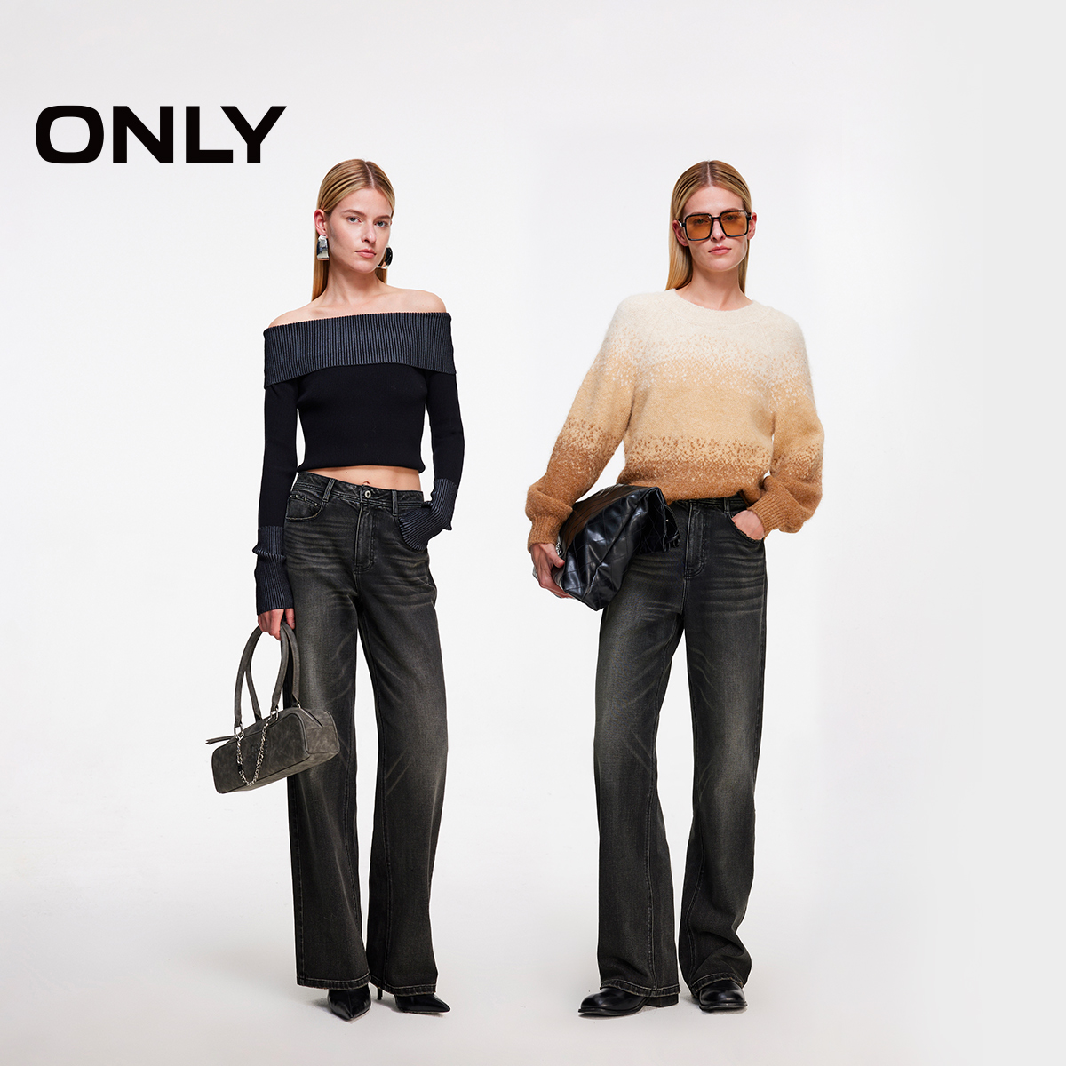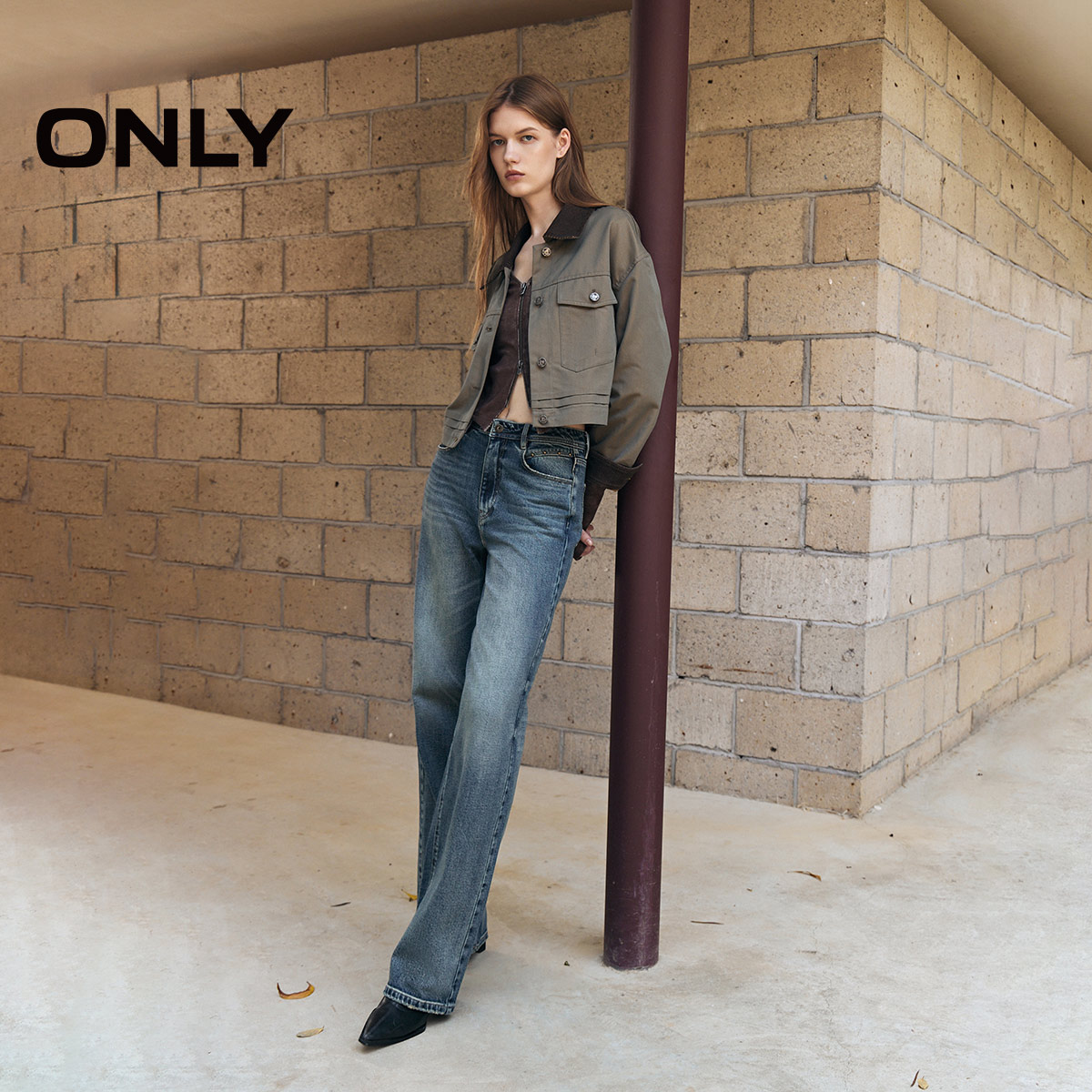 新款 女 显瘦通勤磨白精致长裤 牛仔裤 124332048 直筒裤 ONLY秋季