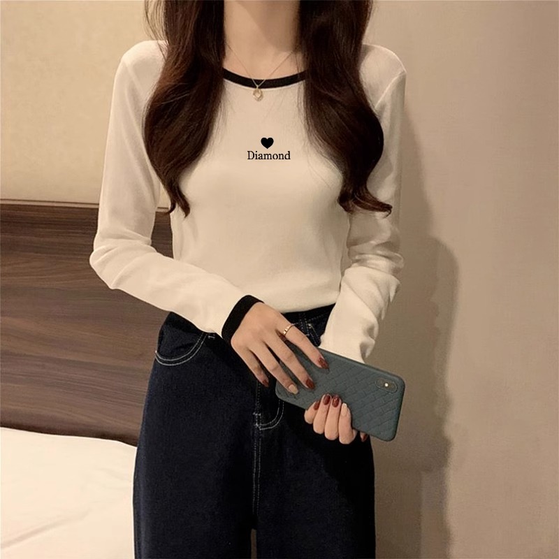 t恤女内搭上衣薄款 2025早秋新款 纯棉洋气圆领撞色长袖 打底衫 女装