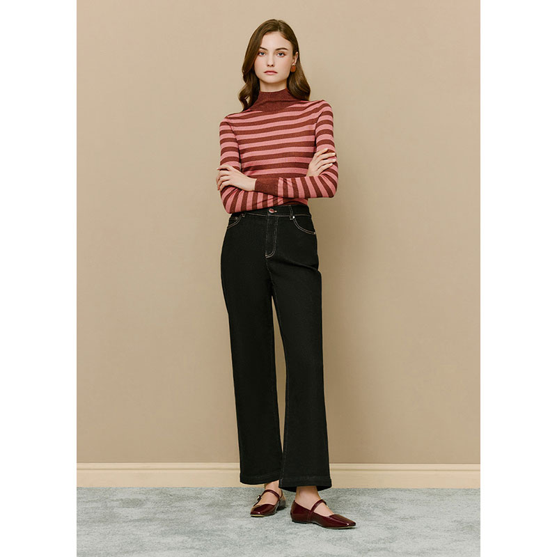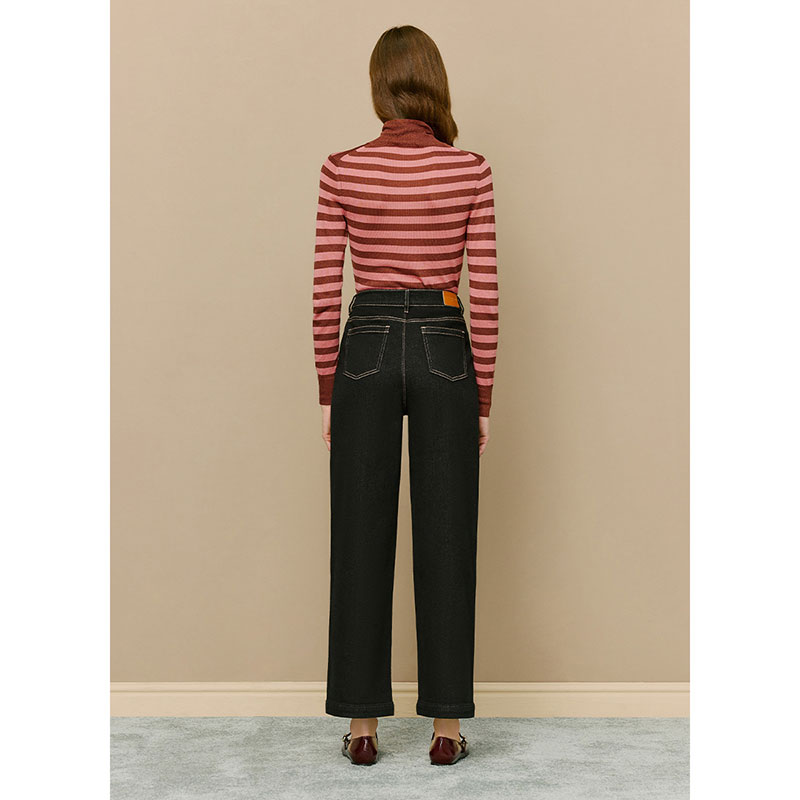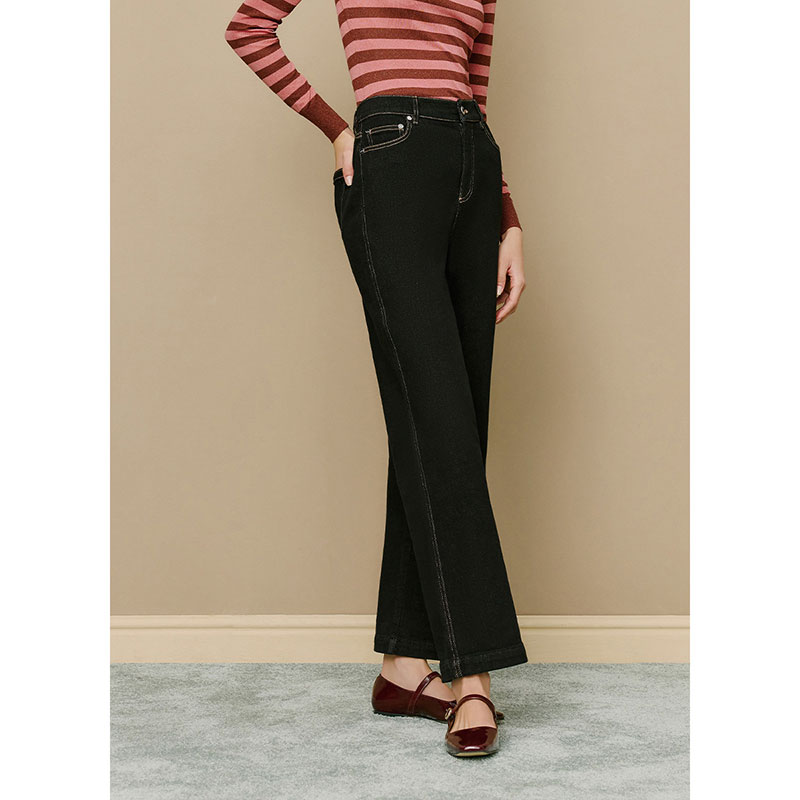 高腰棉质休闲直筒裤 时尚 冬新款 lkbennett黑色加绒牛仔裤