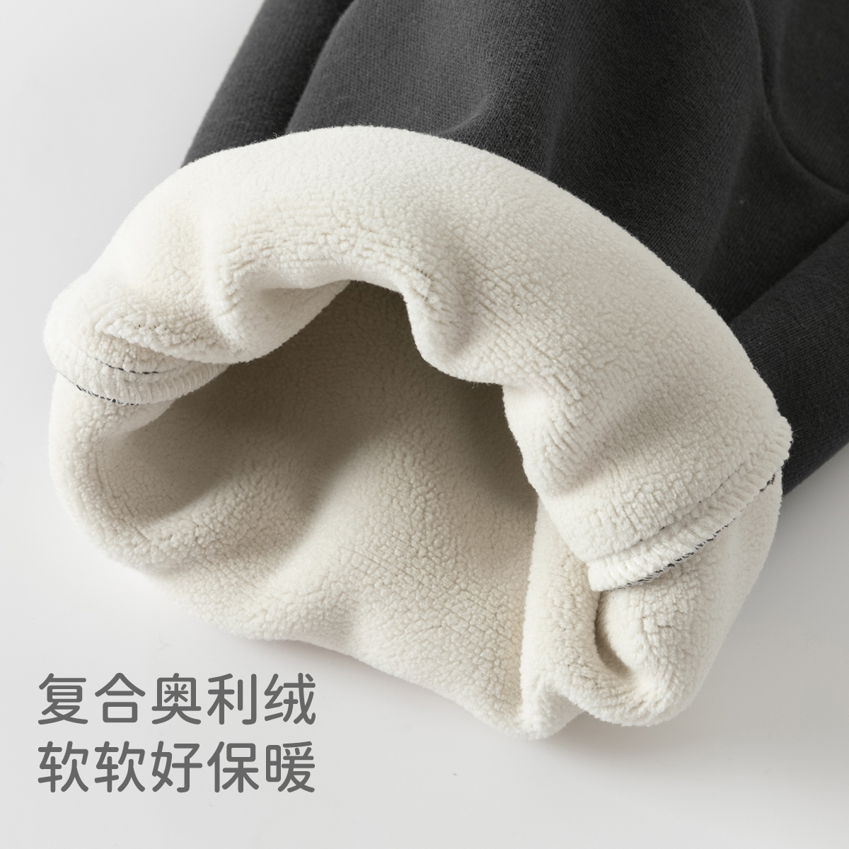 加绒街舞穿搭褶皱宽松休闲长裤 女秋冬季 子 灰色运动卫裤 自然涩美式