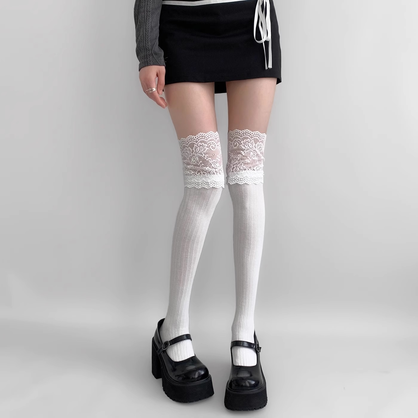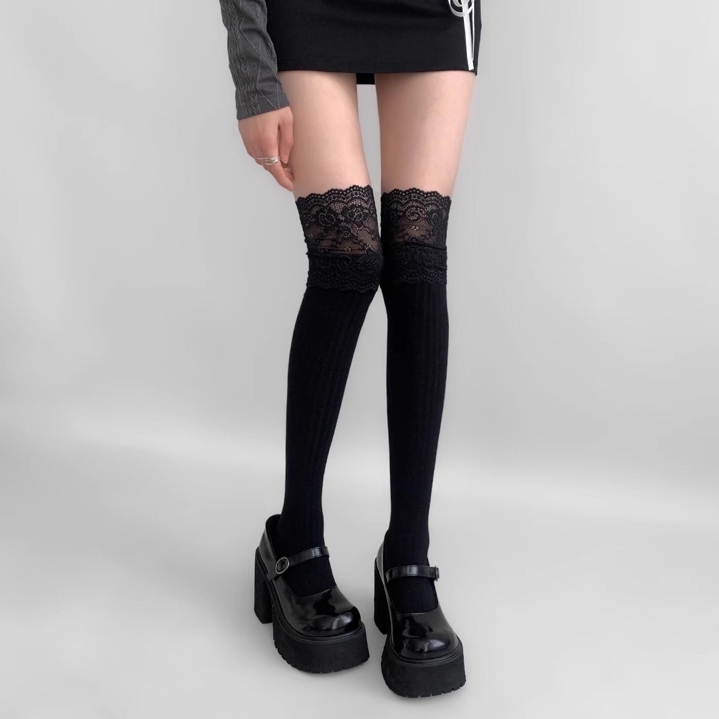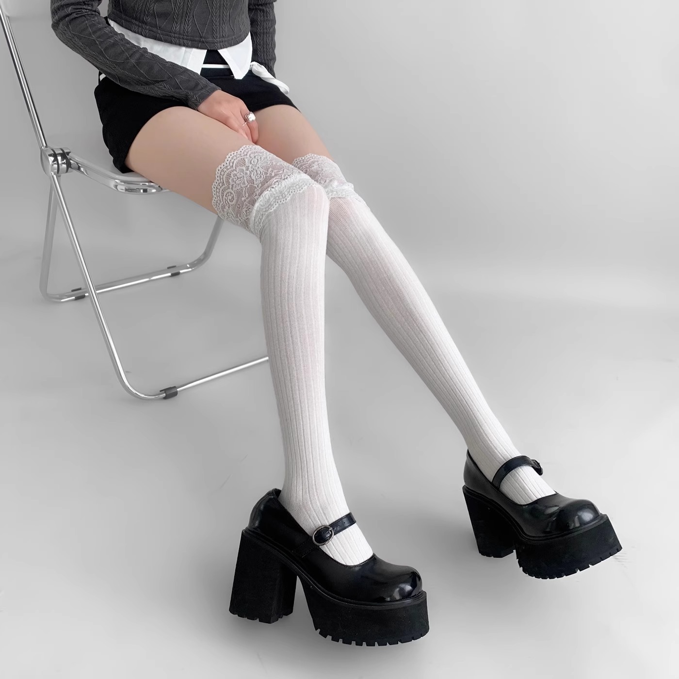 压力小腿袜女半腿jk风中筒堆堆袜配靴子长靴小皮鞋 灰色秋冬长筒袜