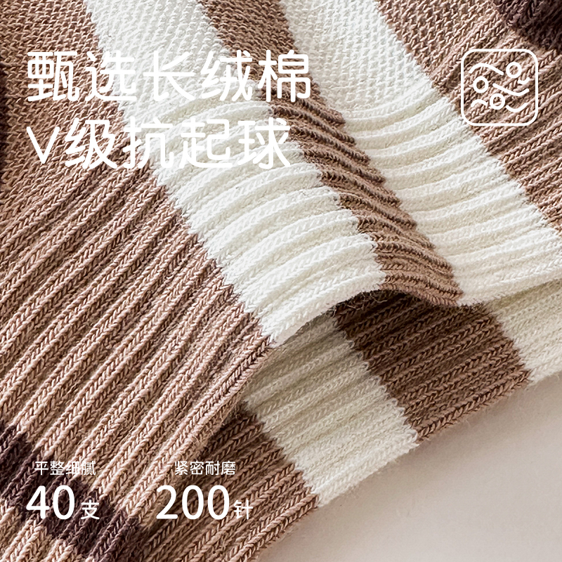 儿童袜子春秋纯棉女童复古拼色咖系条纹中筒袜冬款 韩系男童潮袜 季
