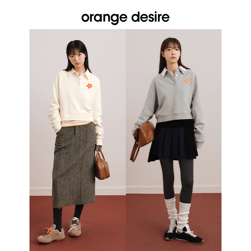 卫衣2024冬季 desire复古学院POLO领短款 orange 新款 小太阳