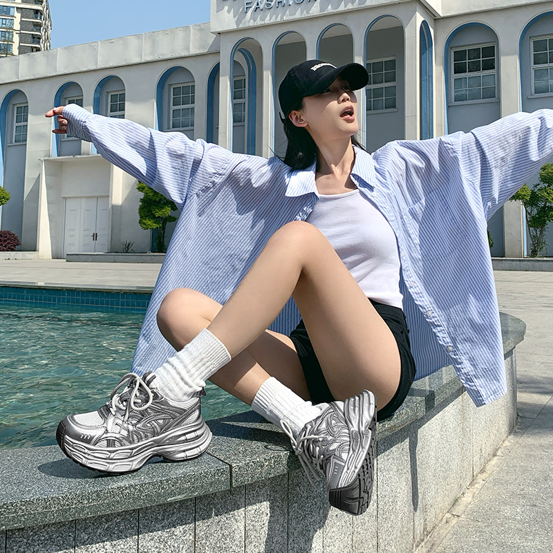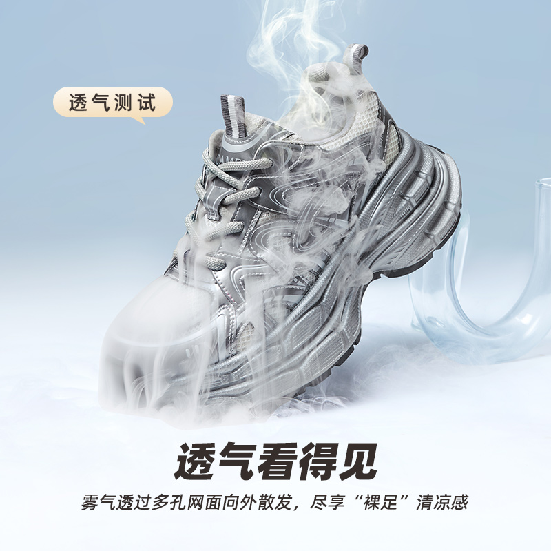 银色厚底老爹鞋 女款 时尚 骆驼女鞋 增高运动鞋 新款 休闲鞋 2025秋季