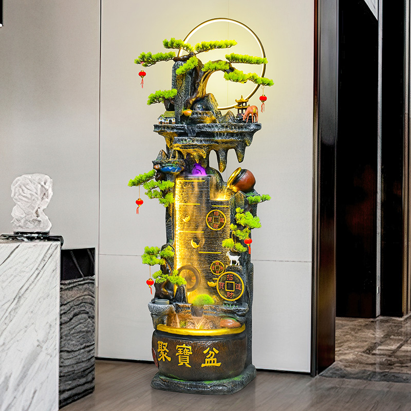 新中式 饰乔迁开业 流水摆件循环水客厅落地风水轮招财假山水景观装