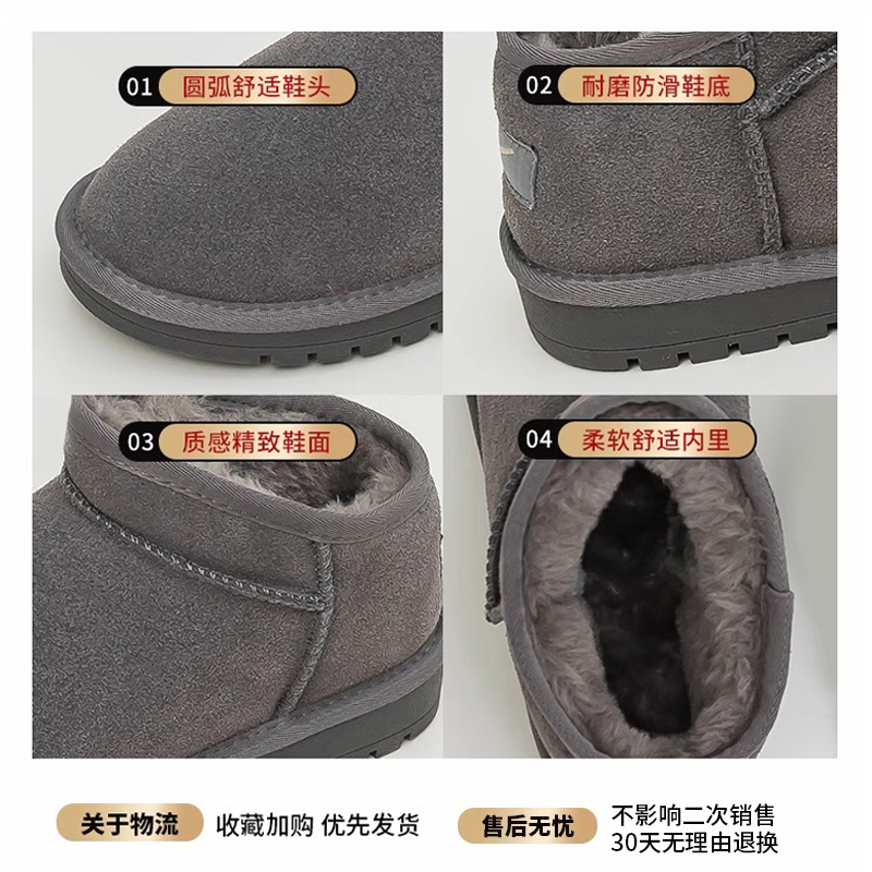 子女 真皮保暖短靴加绒加厚面包棉鞋 回力官方旗舰店雪地靴男士 冬季