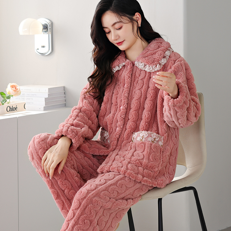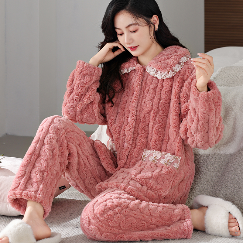 春秋法兰绒家居服 海岛绒套装 轩靓珊瑚绒睡衣女秋冬季 加厚保暖长袖