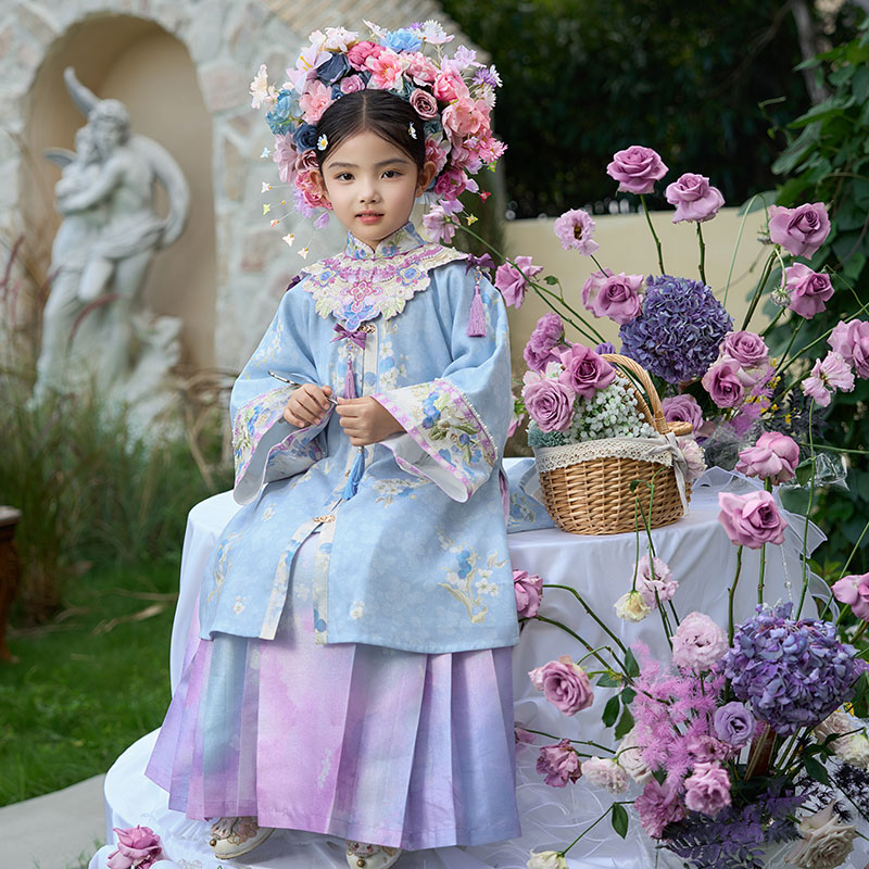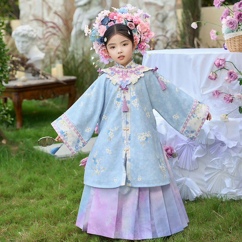新中式 十三余童装 新款 国风马面裙配饰秋季 汉服女童 蓝莓派对云肩