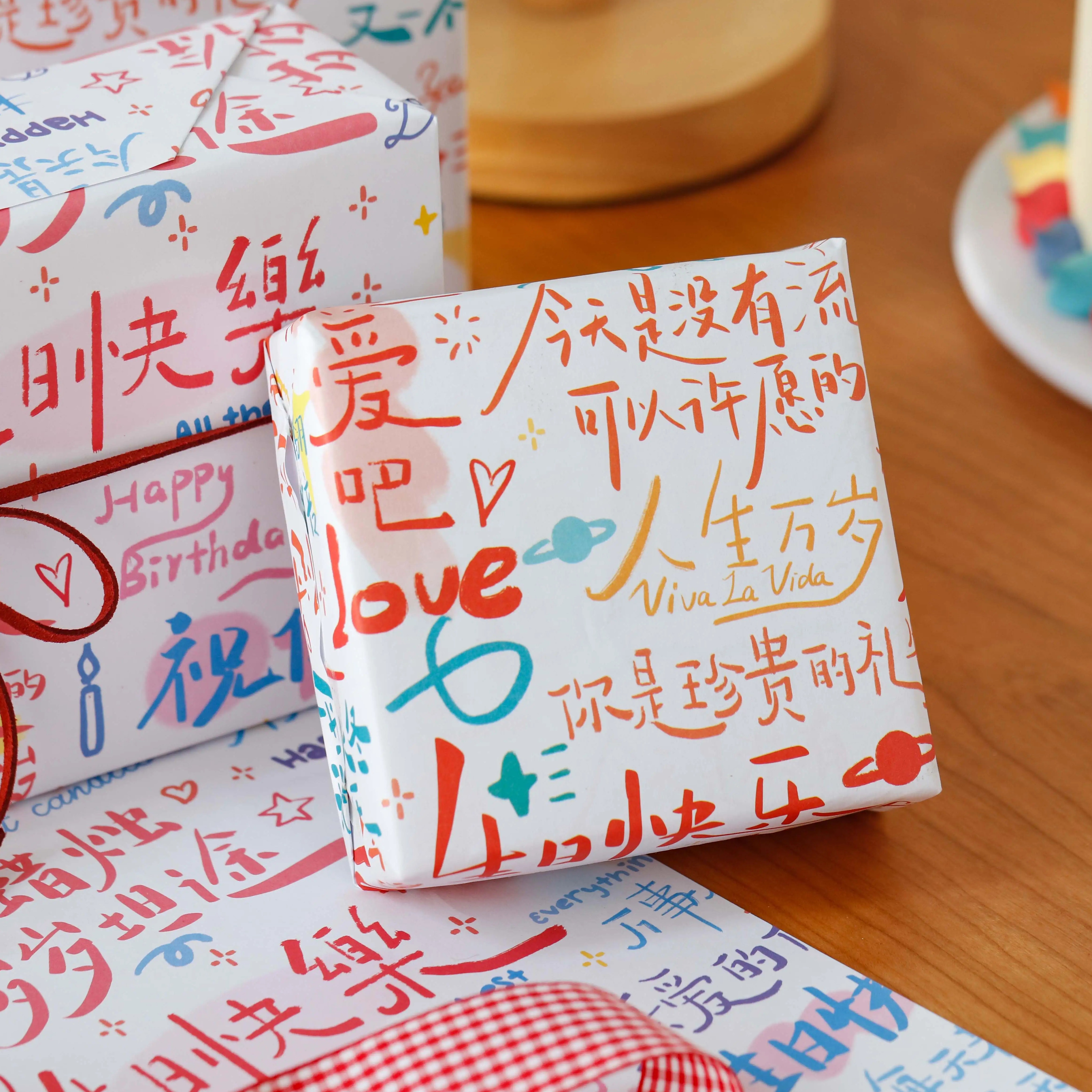 可爱少女心书皮纸大张礼品纸 书皮纸花束包装 冠淘涂鸦生日大张礼物包装 纸高颜值可爱生日礼品礼物包装