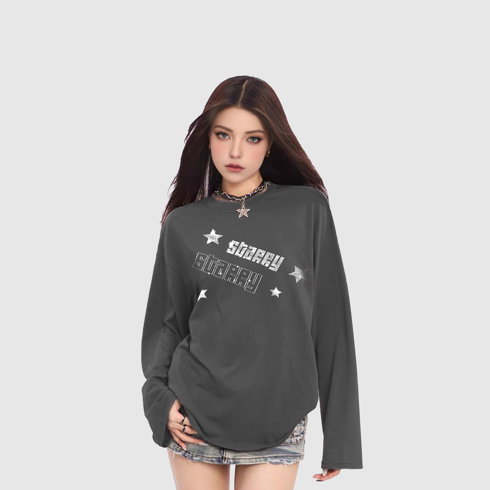 C3011 烫钻情侣长袖 VINHOPESS 威宏丝纯棉潮牌美式