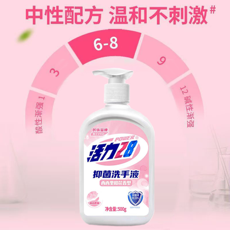活力28洗手液温和清洁无刺激花香型家用500g大瓶抑菌入口外出健康