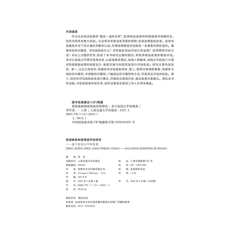 社新华书店正版 视角李芹社会学上海交通大学出版 基于底线公平 低保救助制度绩效评估研究