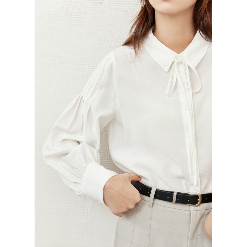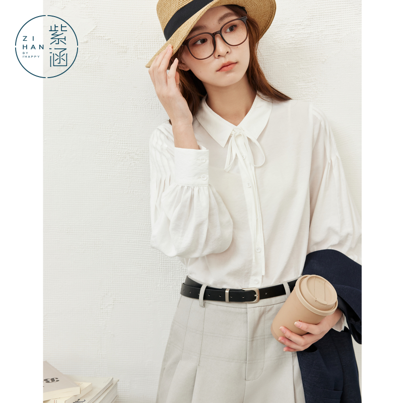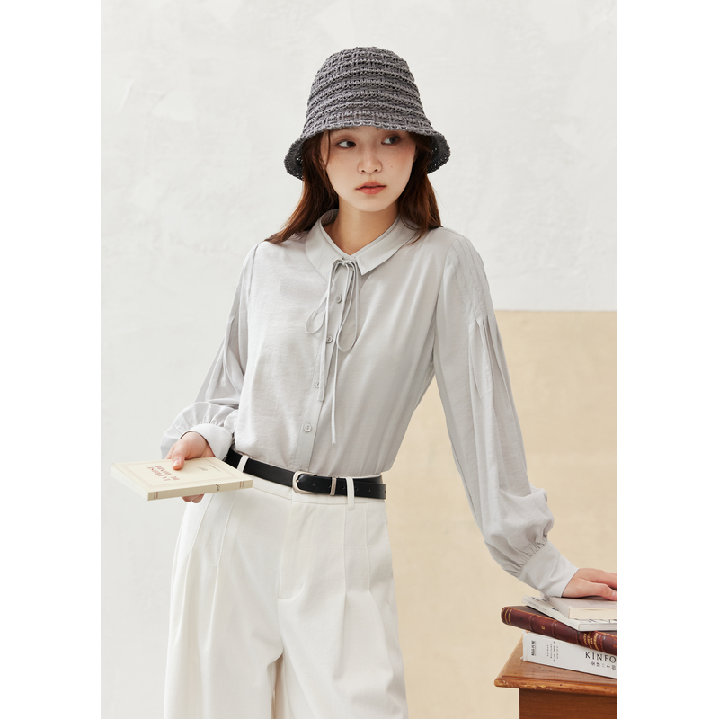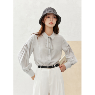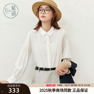 高智淡人风简约百搭时尚 紫涵长袖 新款 女2025秋季 上衣 翻领飘带衬衫